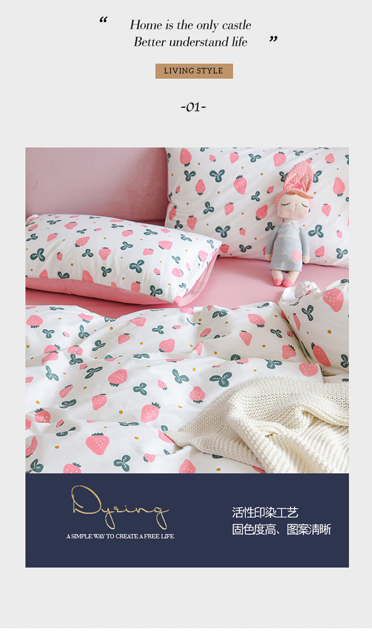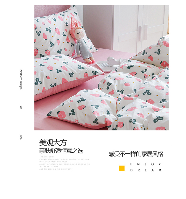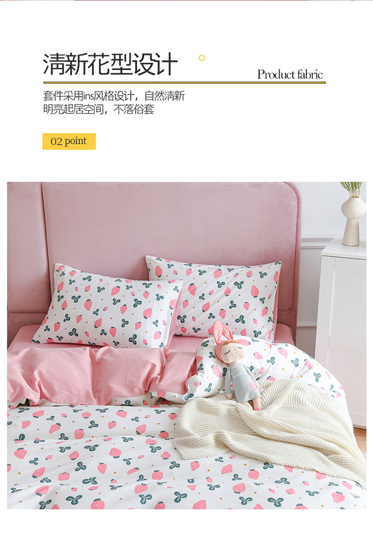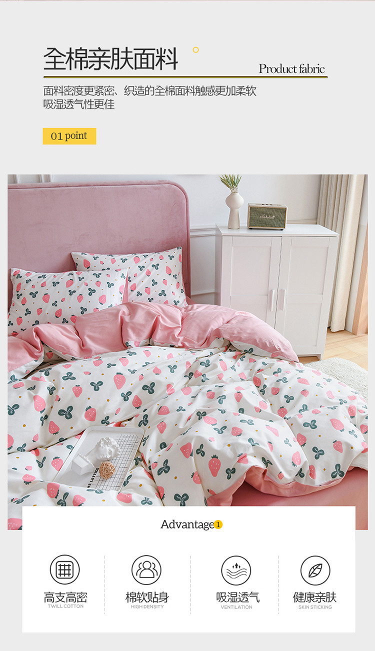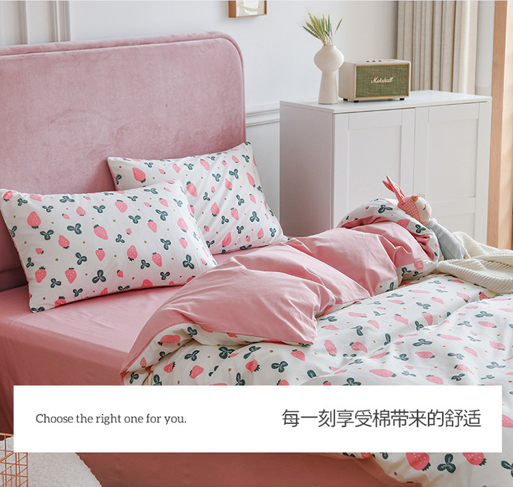 (总)捌月 2023新款13372全棉四件套竖纹印花系列,草莓园,兔小姐,小兰花,小甜心