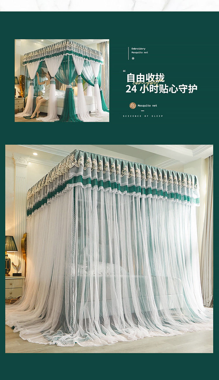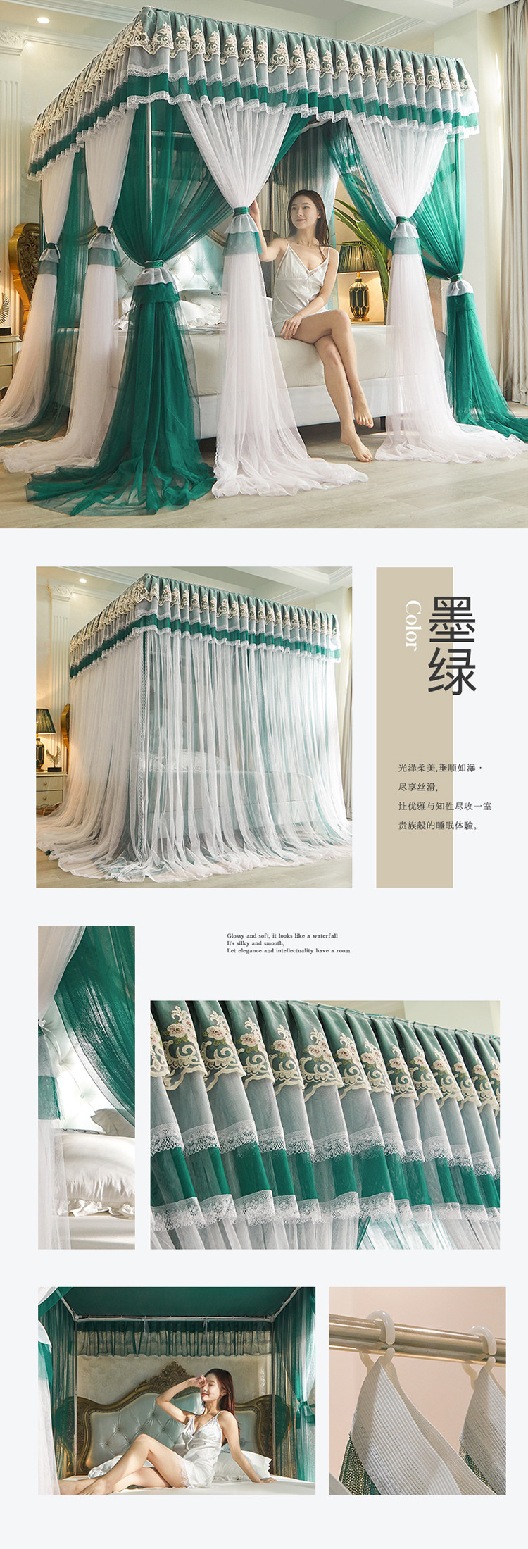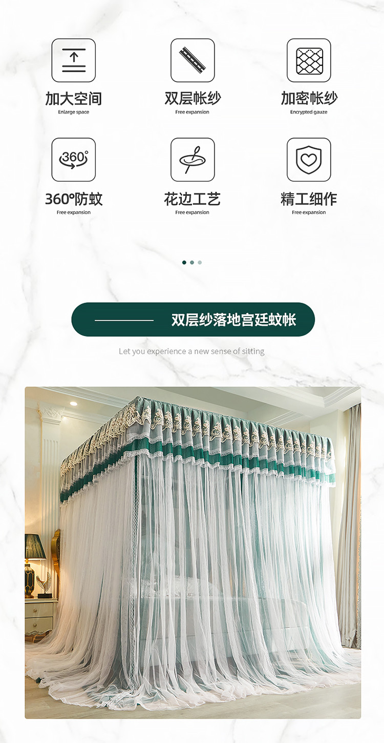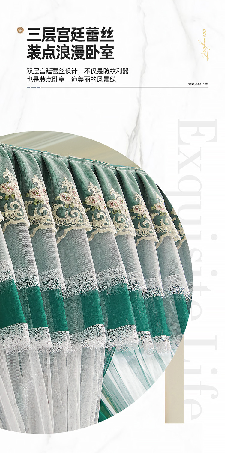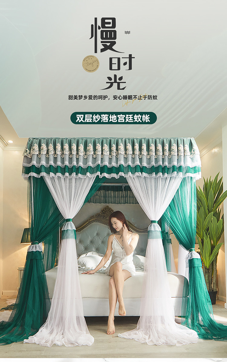 商品名称:迪凡保罗 2021新款5823双层纱落地宫廷蚊帐 墨绿