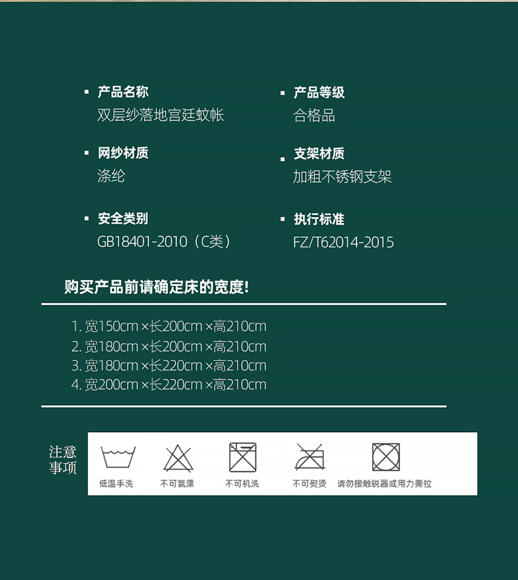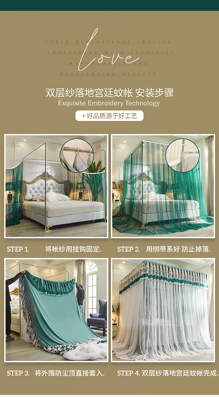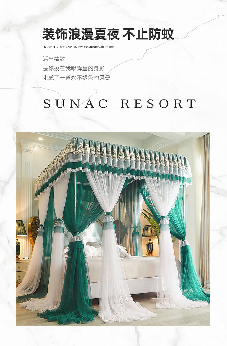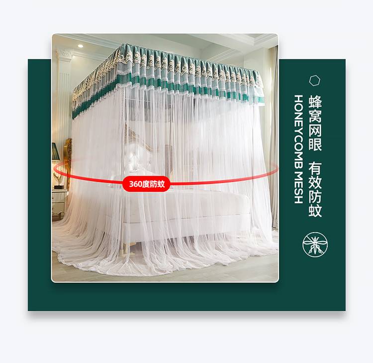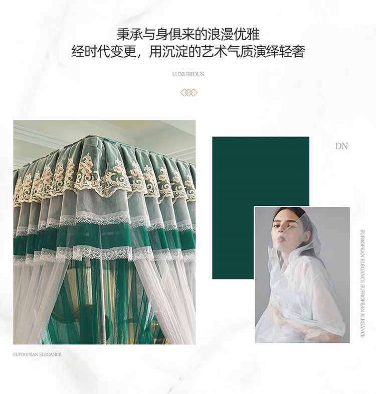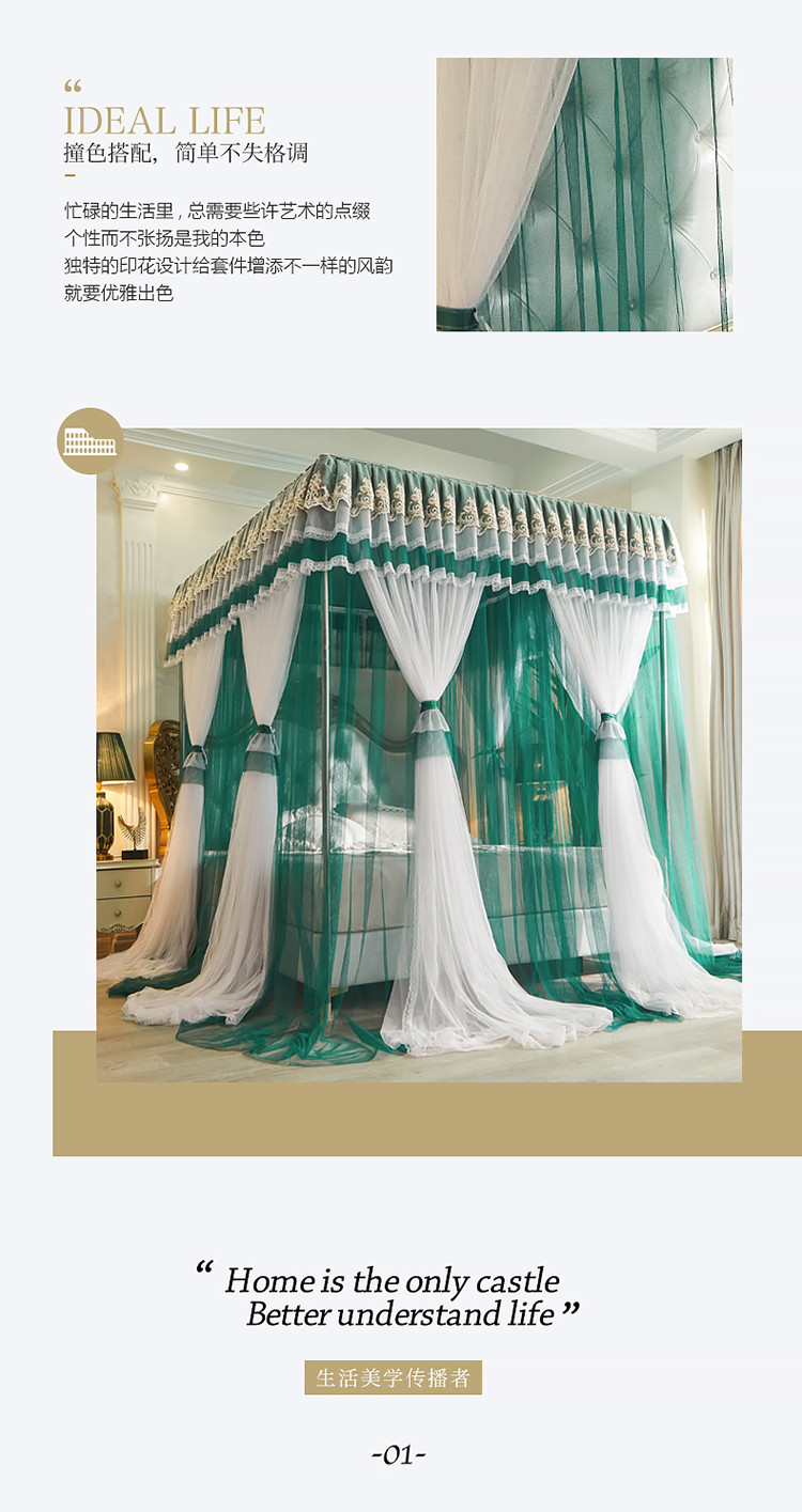 商品名称:迪凡保罗 2021新款5823双层纱落地宫廷蚊帐 墨绿