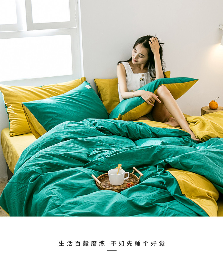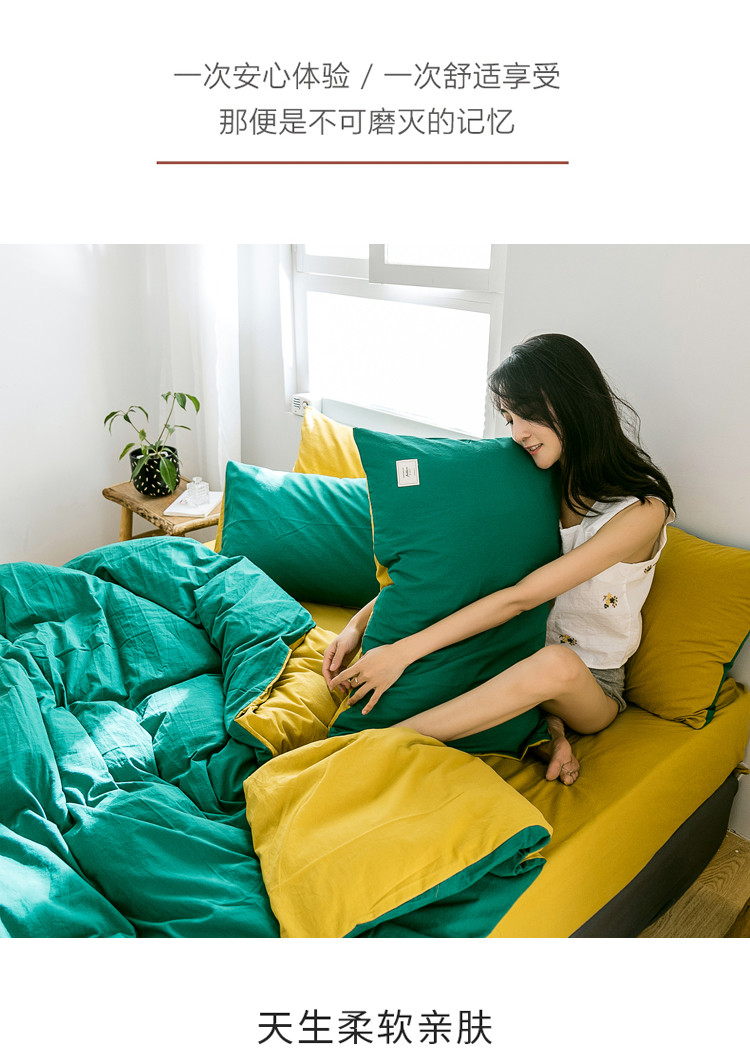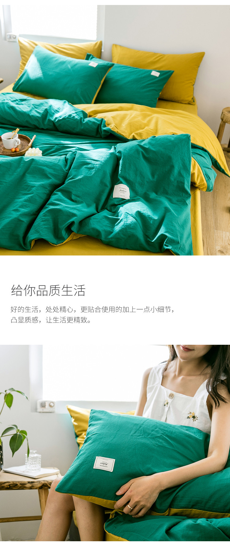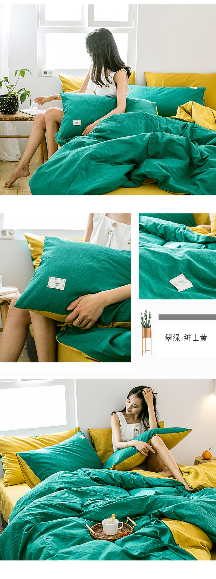 商品名称:雅居纺 2022新款全棉水洗棉四件套 翠绿+绅士黄