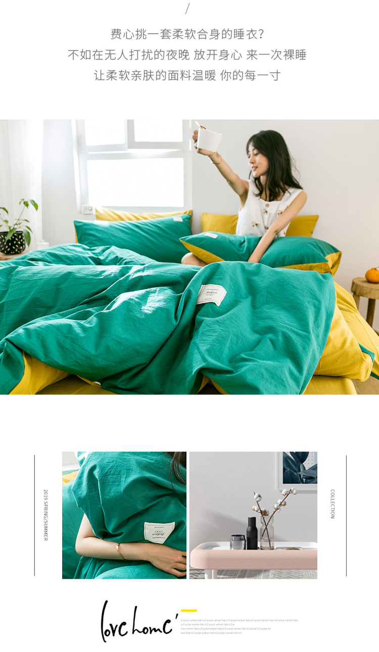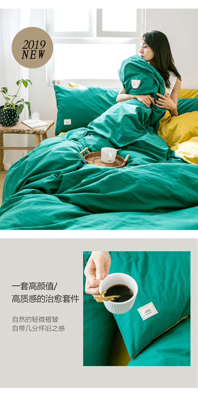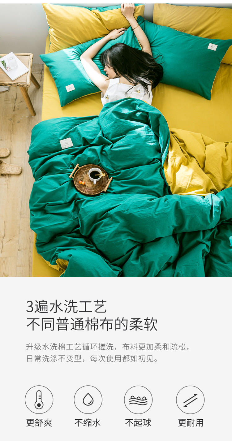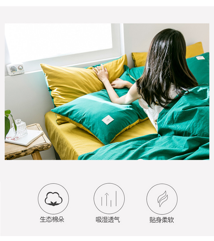 商品名称:雅居纺 2022新款全棉水洗棉四件套 翠绿+绅士黄
