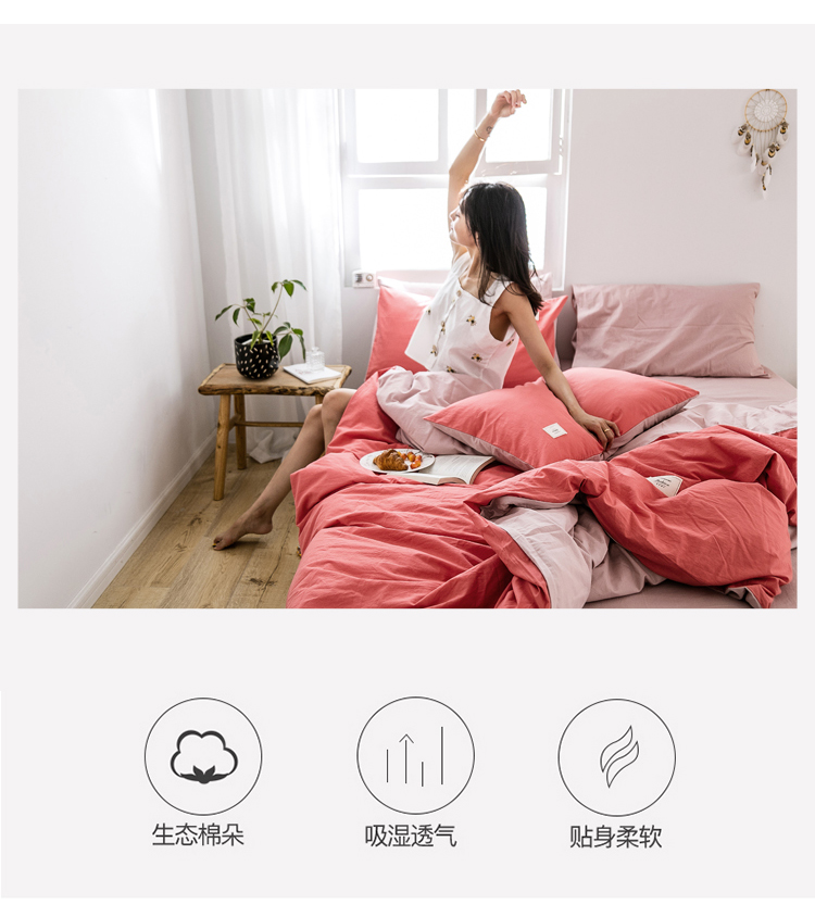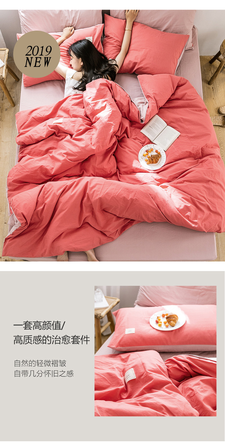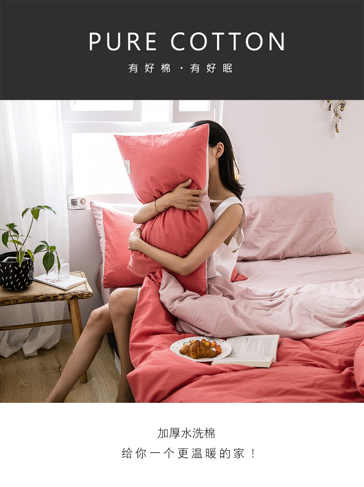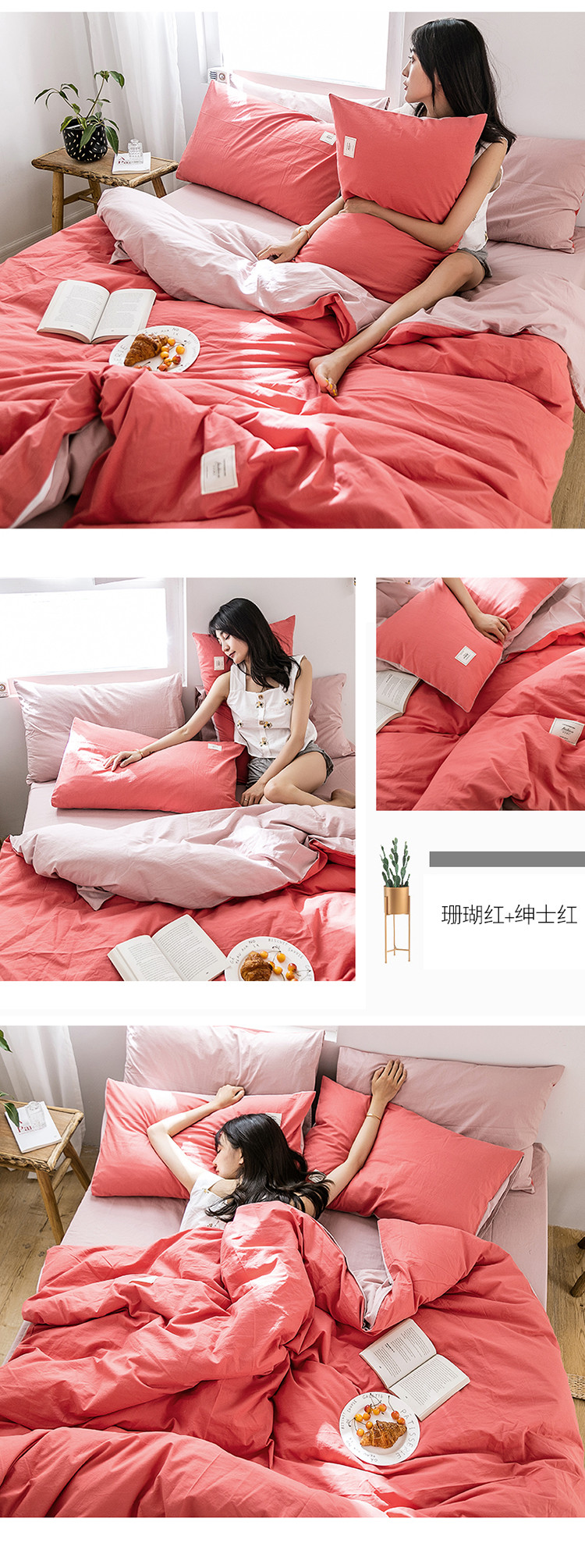 雅居纺 2022新款全棉水洗棉四件套 珊瑚红+绅士红