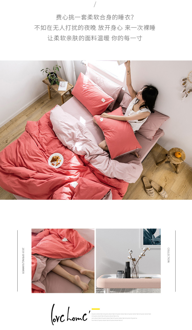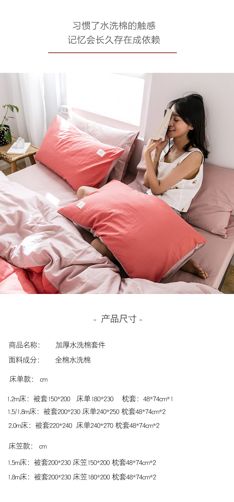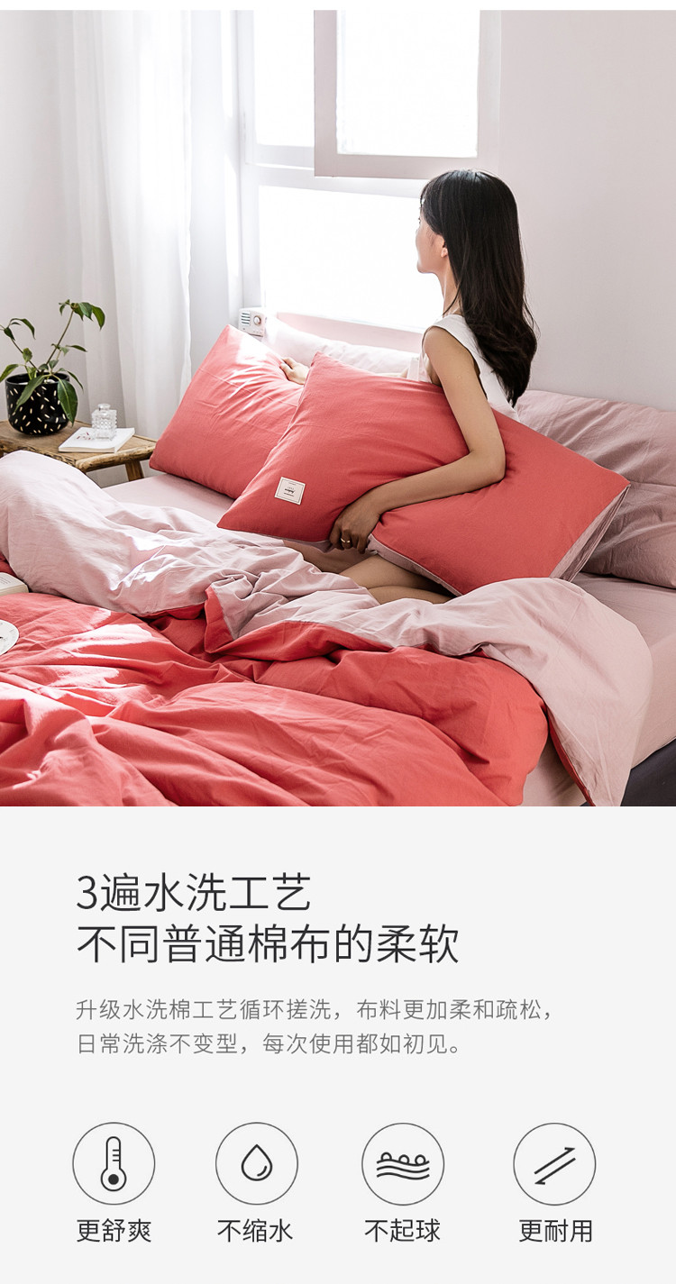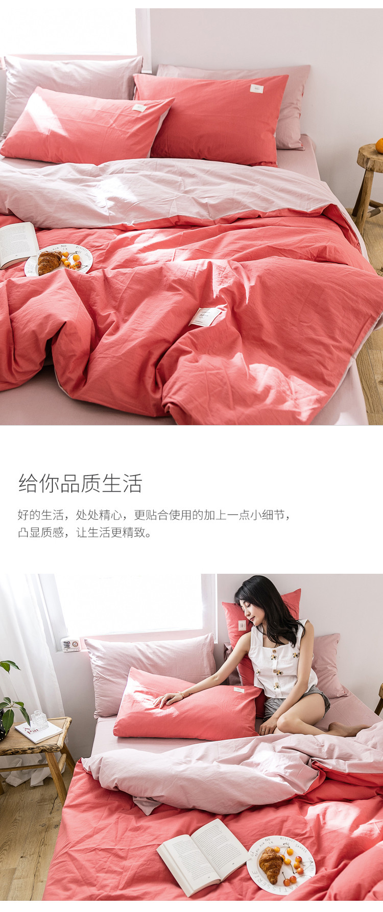 商品名称:雅居纺 2022新款全棉水洗棉四件套 珊瑚红+绅士红