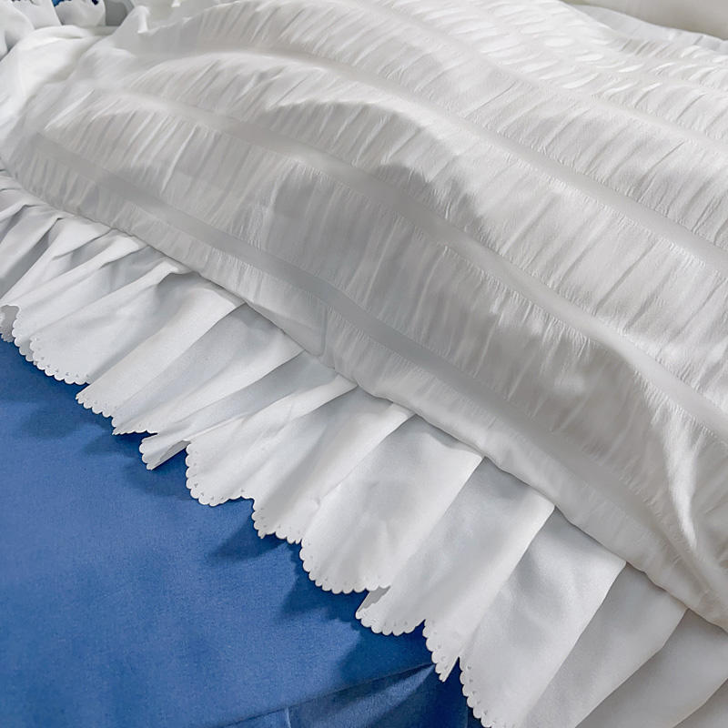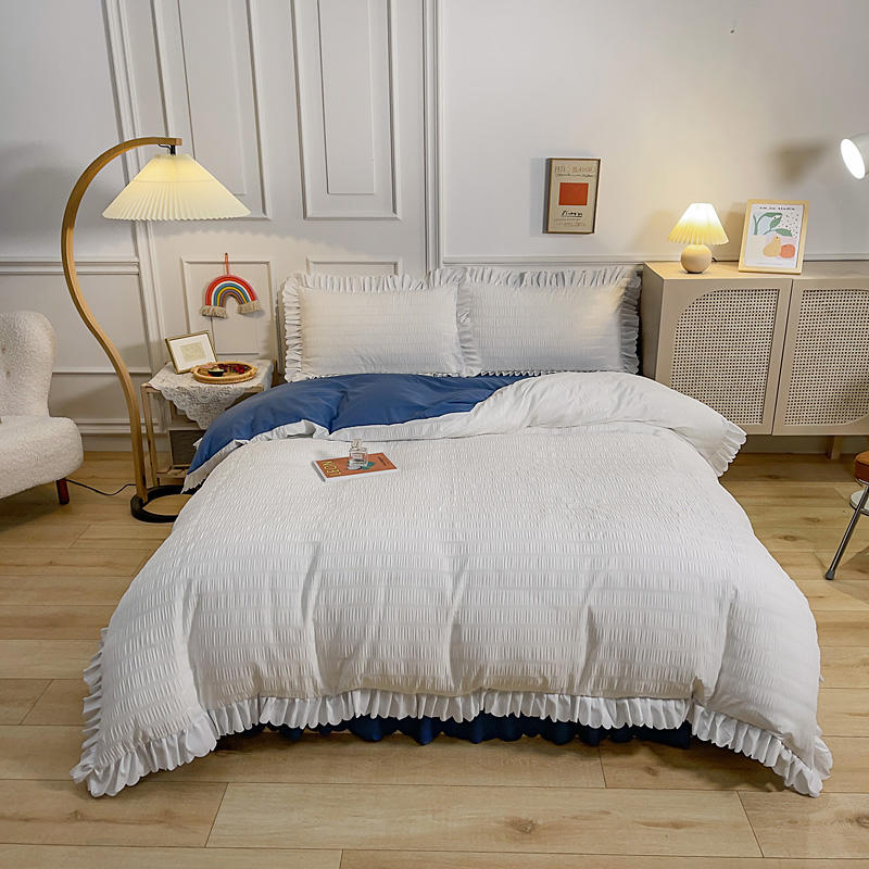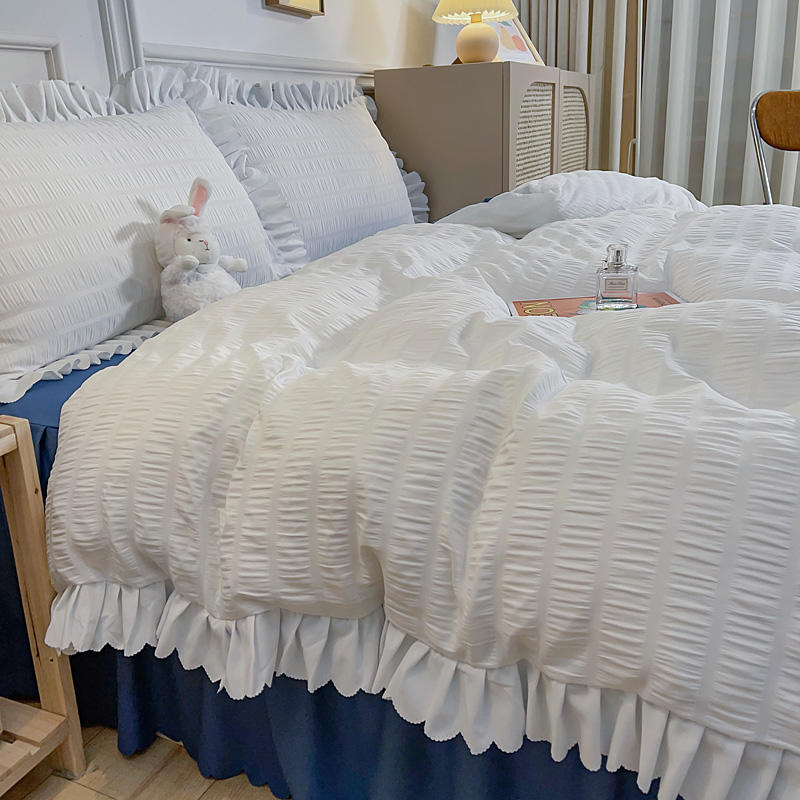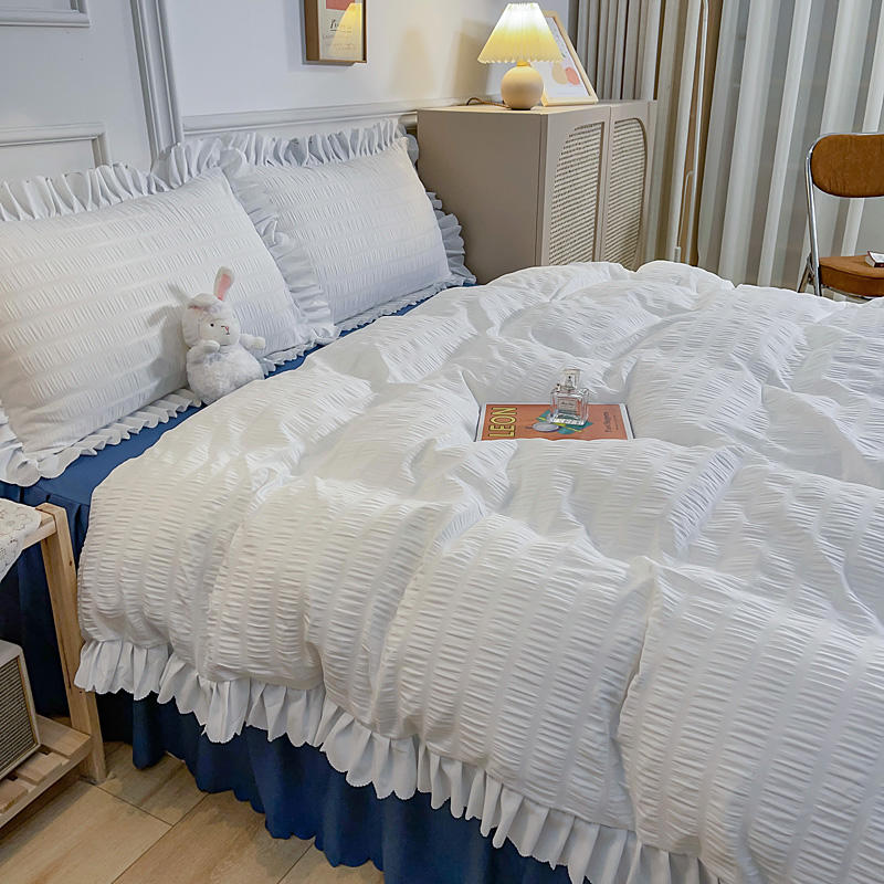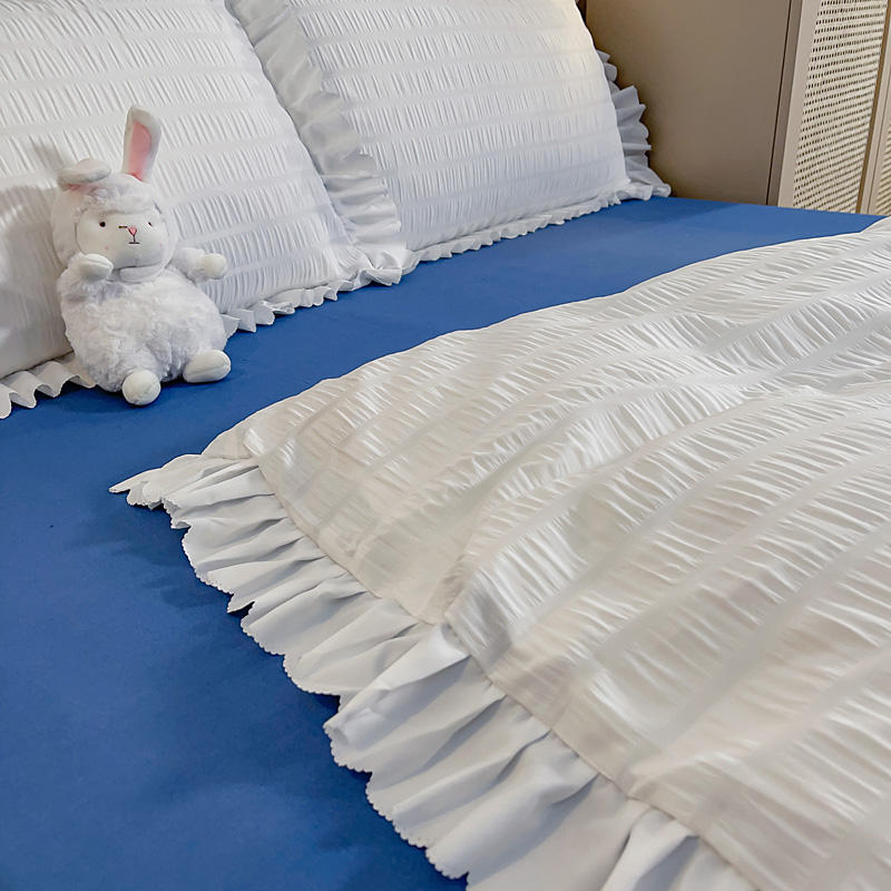 当前位置: 91家纺网 > 商品网购 > 床品套件 > 四件套 > 化纤普通四件套 > 秋艳 荷叶边泡泡纱床裙四件套床单公主系列 泡泡小姐-蓝白