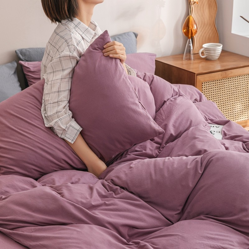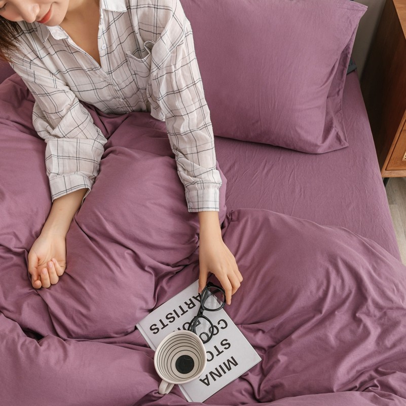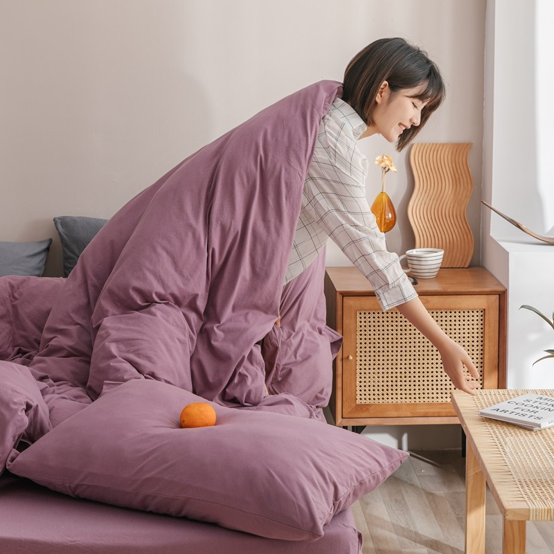商品名称:简煦 2025新款针织印染纯色四件套 印-紫罗兰