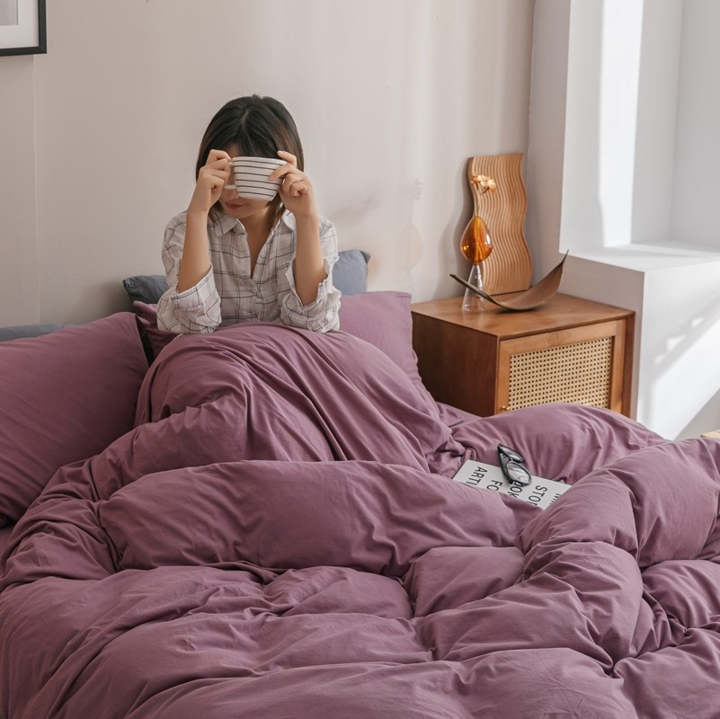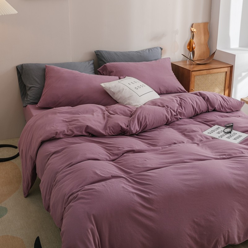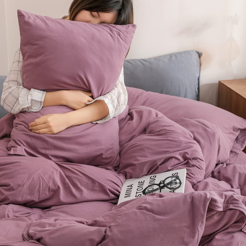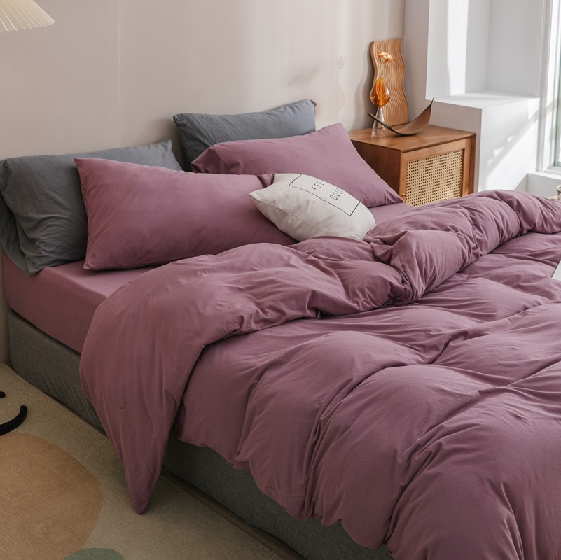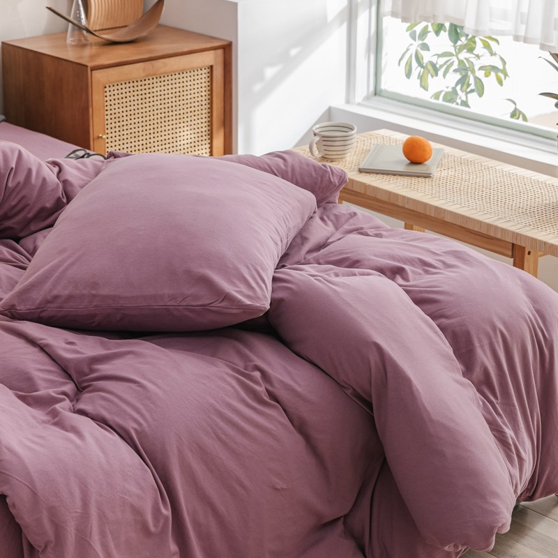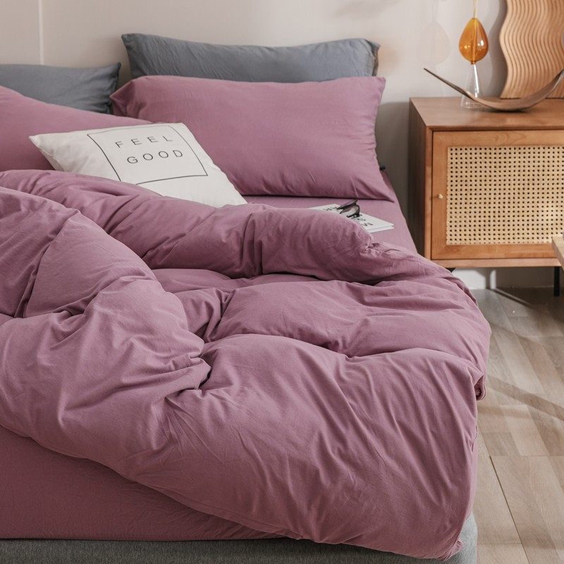 简煦 2025新款针织印染纯色四件套 印-紫罗兰