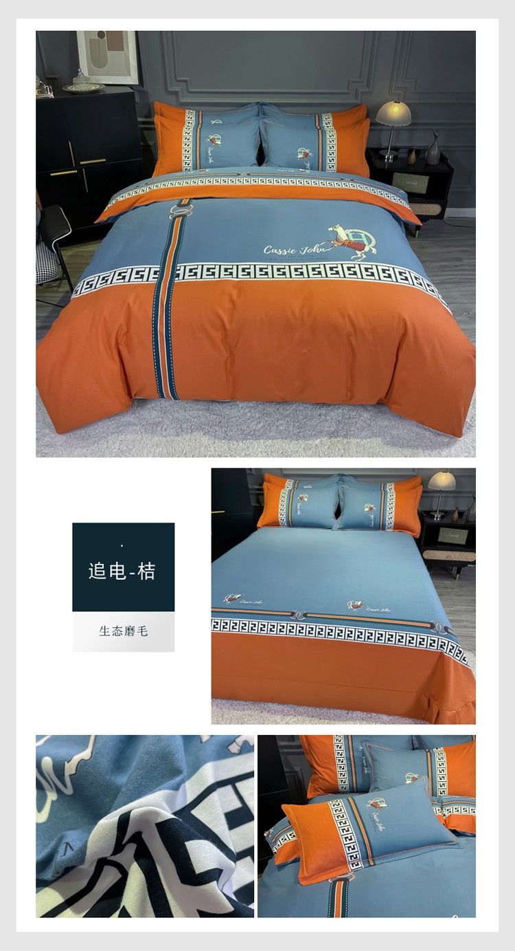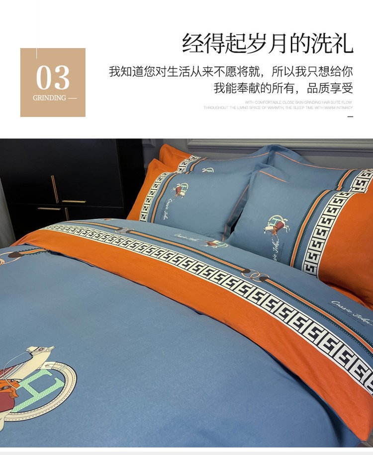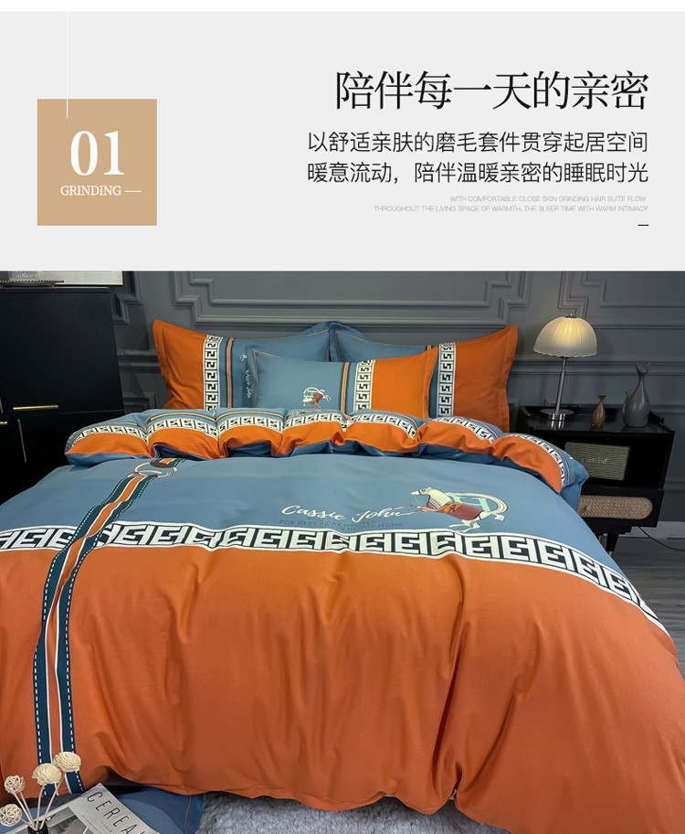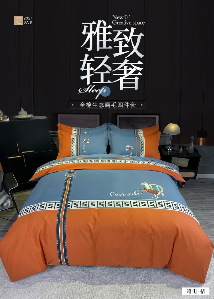 当前位置: 91家纺网 > 商品网购 > 床品套件 > 四件套 > 普通磨毛四件套 > 金爱家2021新款大版磨毛条格简约四件套追电-桔