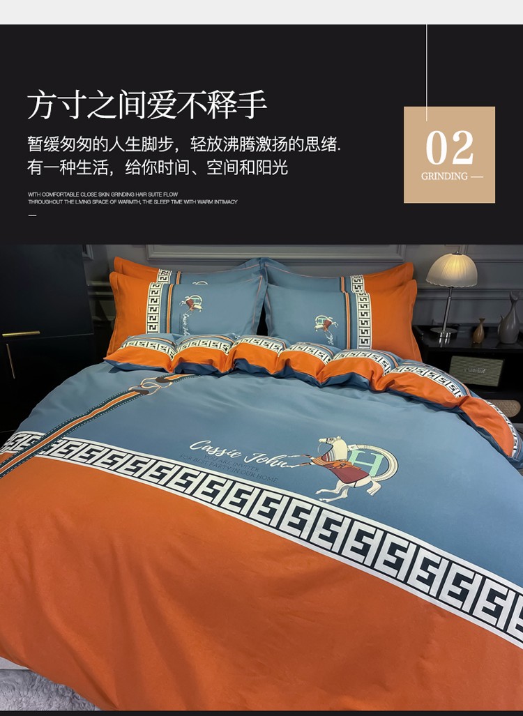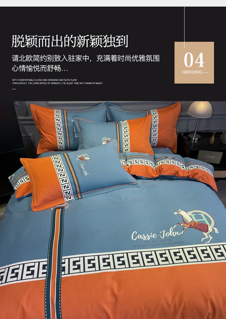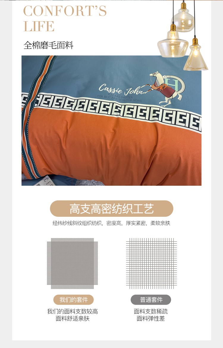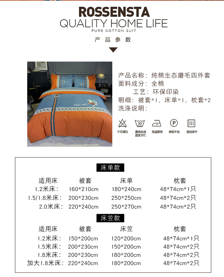 当前位置: 91家纺网 > 商品网购 > 床品套件 > 四件套 > 普通磨毛四件套 > 金爱家2021新款大版磨毛条格简约四件套追电-桔