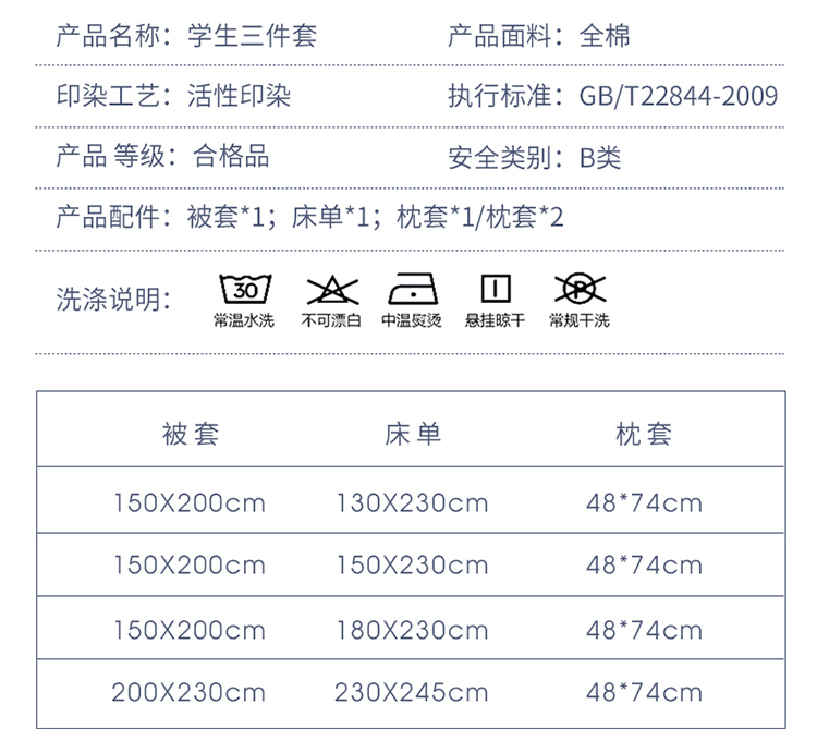 商品名称:芃成家纺 2021新款学生三件套 星辰恋