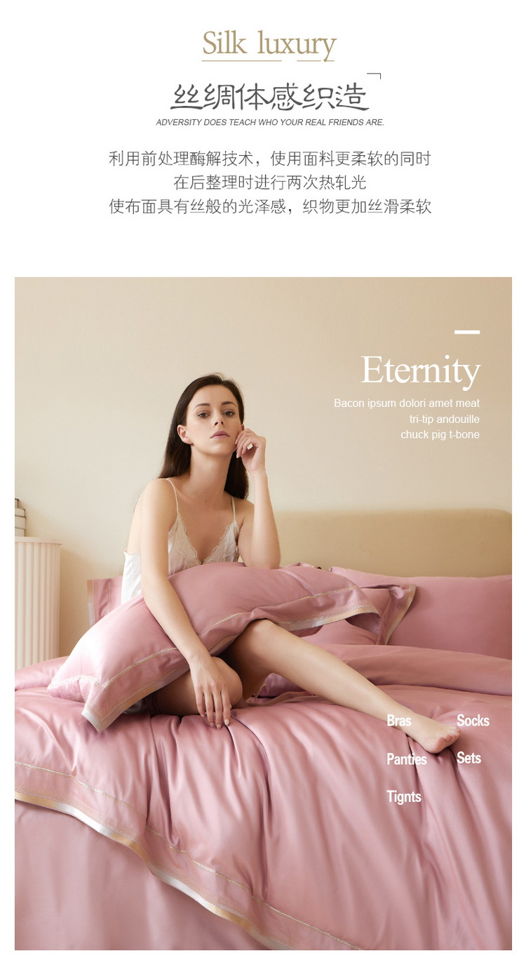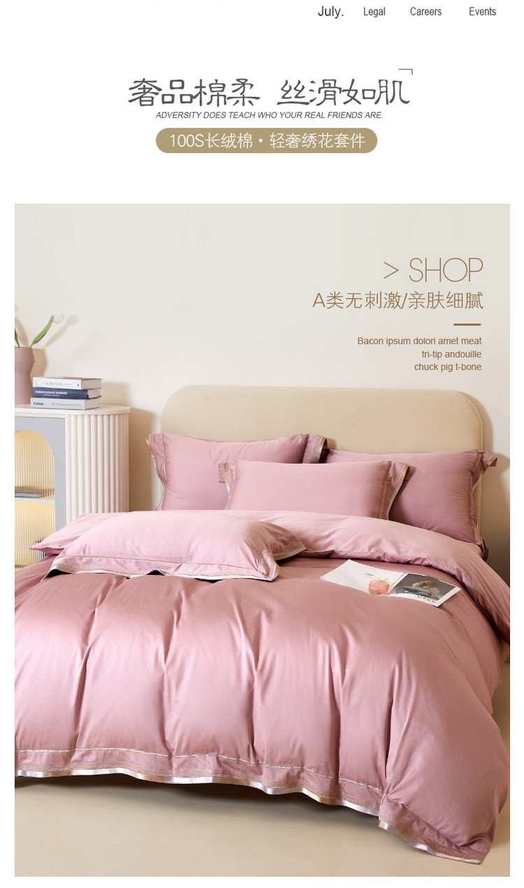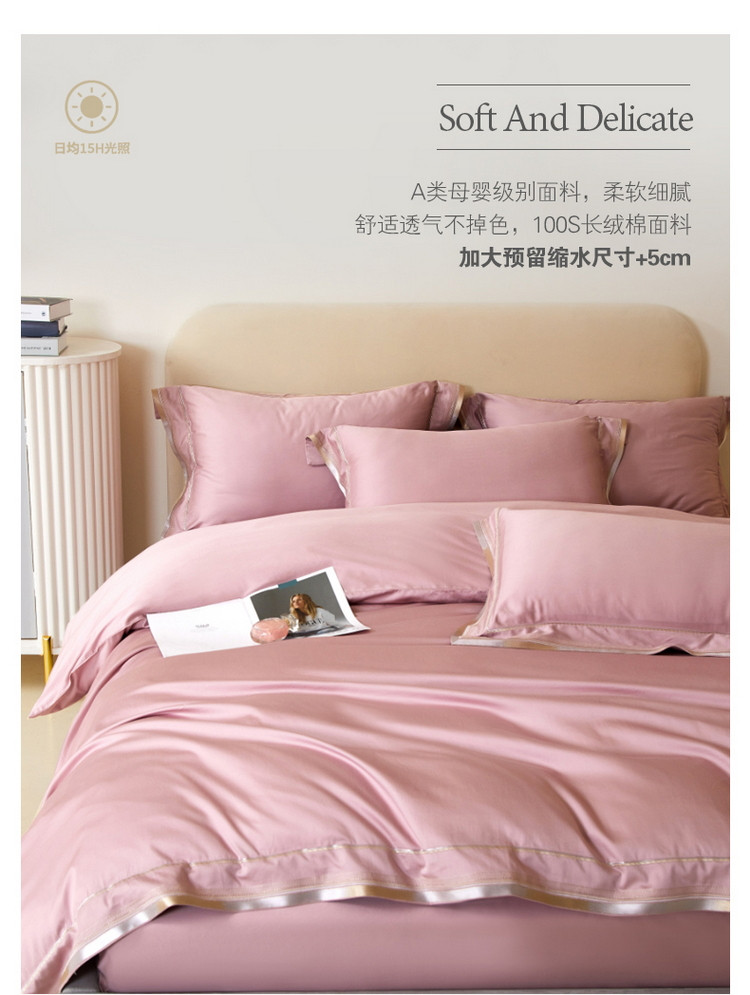 商品名称:618家纺新款100S长绒棉四件套100支被套60支床上用品典雅-浅豆沙