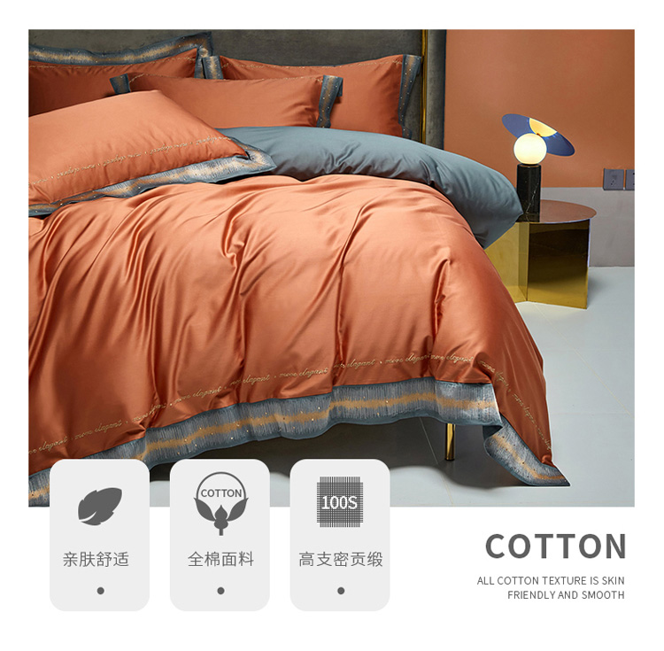 爱缦 2021新款星空系列100支长绒棉奥棉四件套 西柚桔