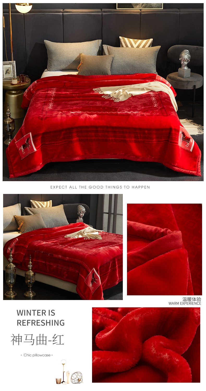 (总)凯轩毛毯网销专供 2026新款仿刺绣双层加厚压花云毯,豆沙红,绛紫色,孔雀绿,奶油咖,珊瑚粉,深灰色