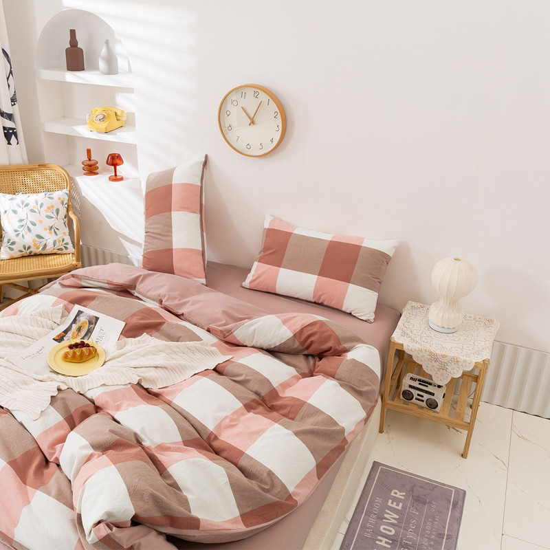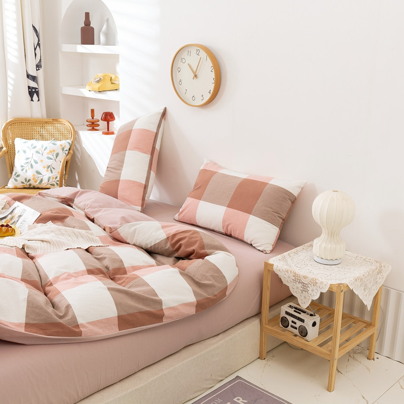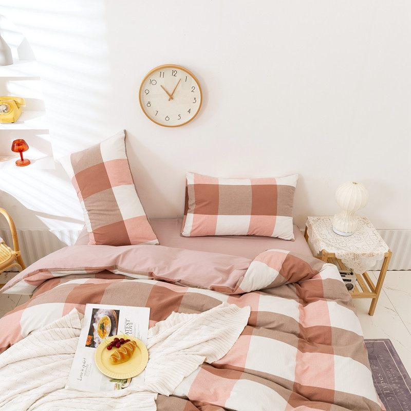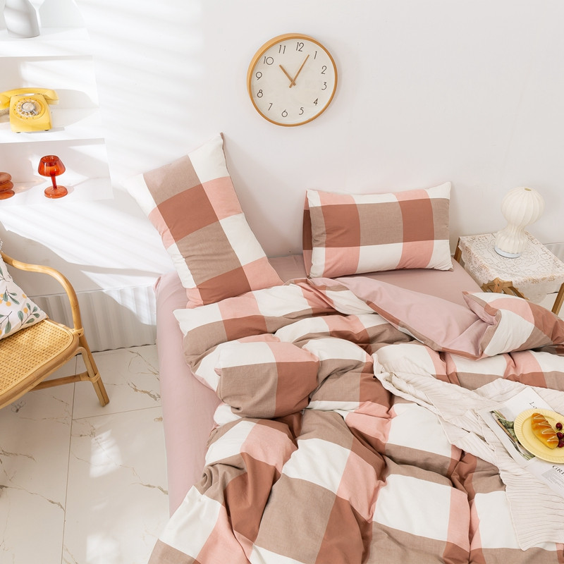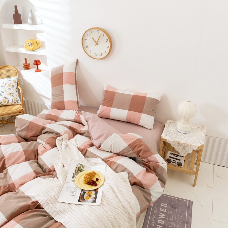 简色坊 2023新款全棉水洗棉四件套优雅格调-蜜粉大格,优雅格调-蜜粉大格