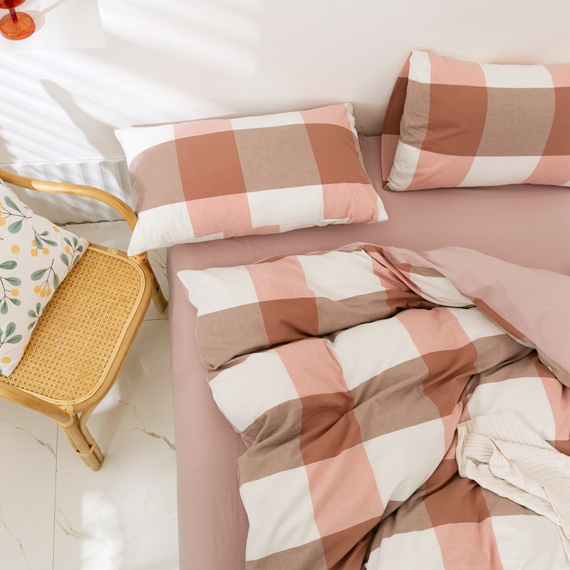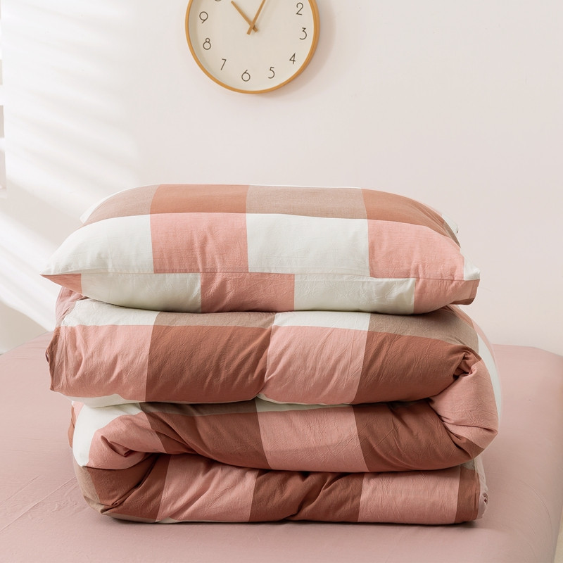简色坊 2023新款全棉水洗棉单品被套优雅格调-蜜粉大格