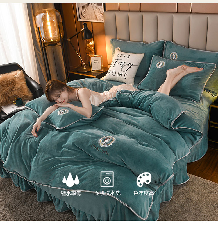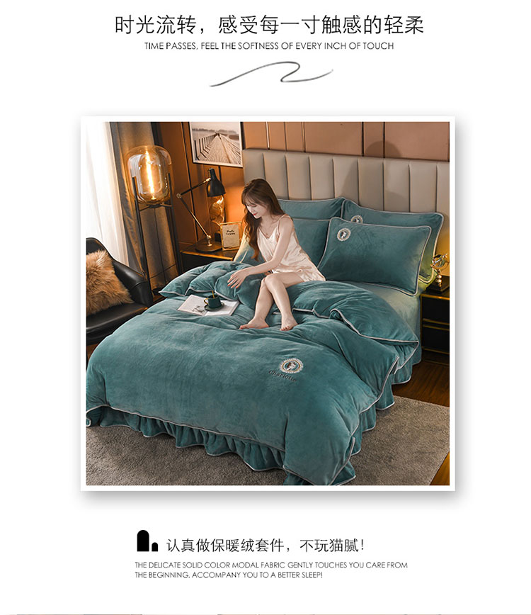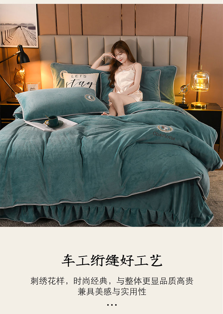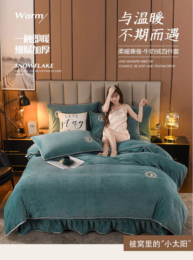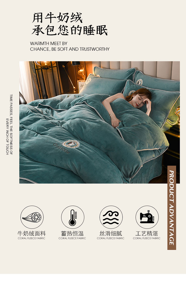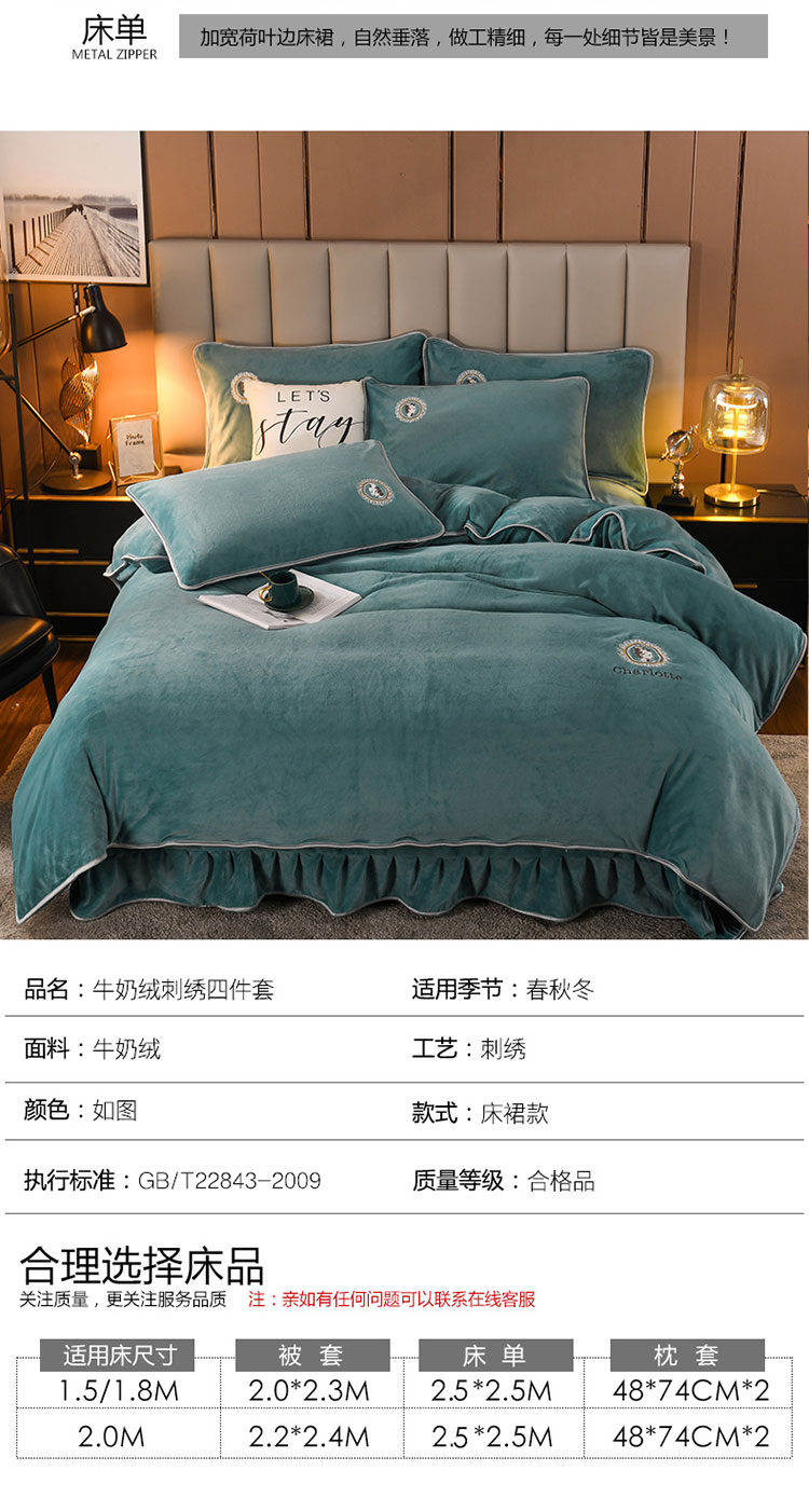 商品名称:迷仙巢 2021新款牛奶绒系列四件套典雅 典雅-豆绿