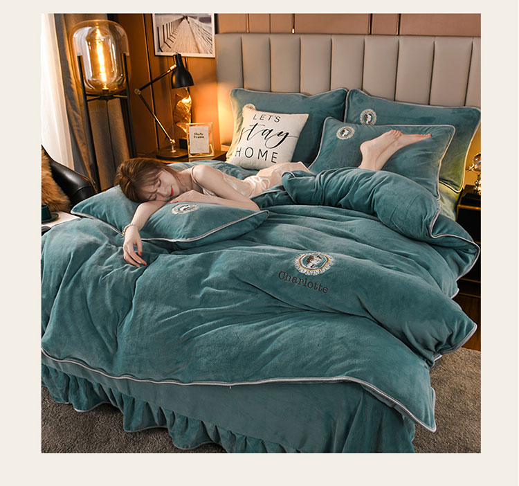 迷仙巢 2021新款牛奶绒系列四件套典雅 典雅-豆绿