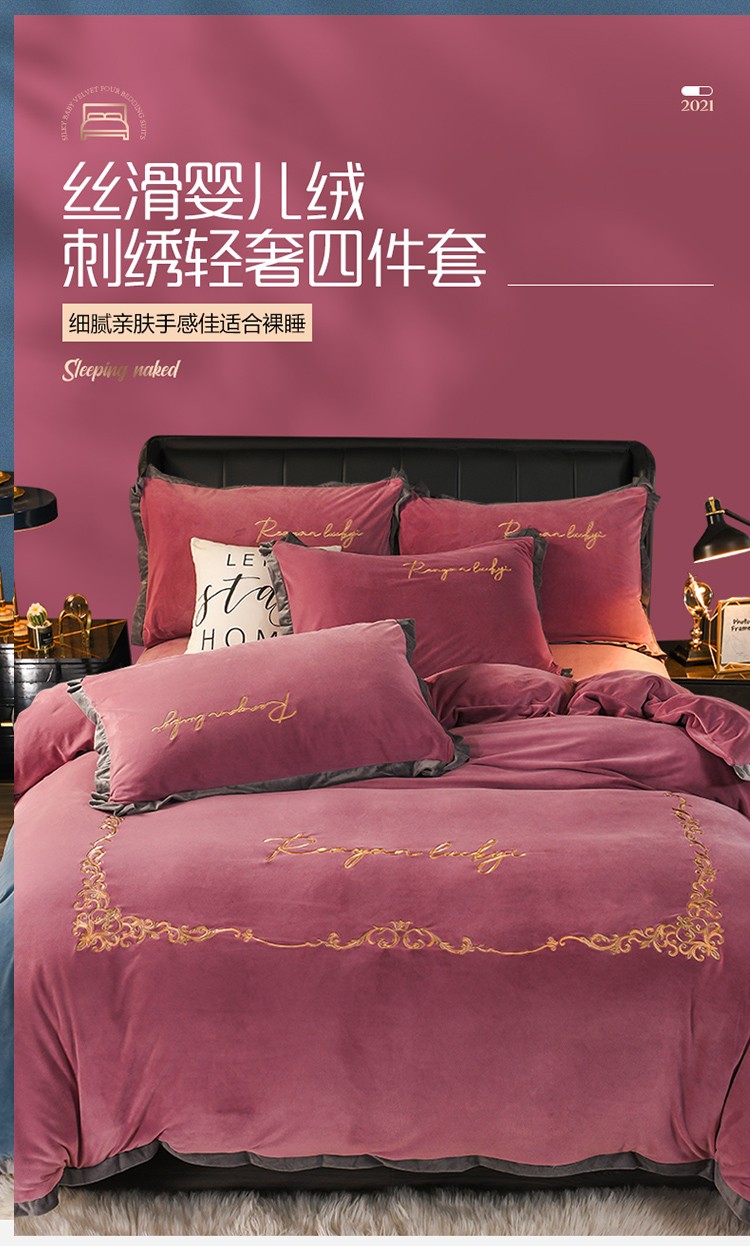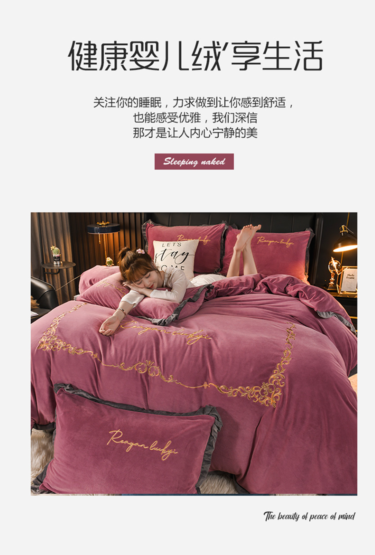 商品名称:迷仙巢 2021新款婴儿绒系列四件套盛世 盛世-豆沙