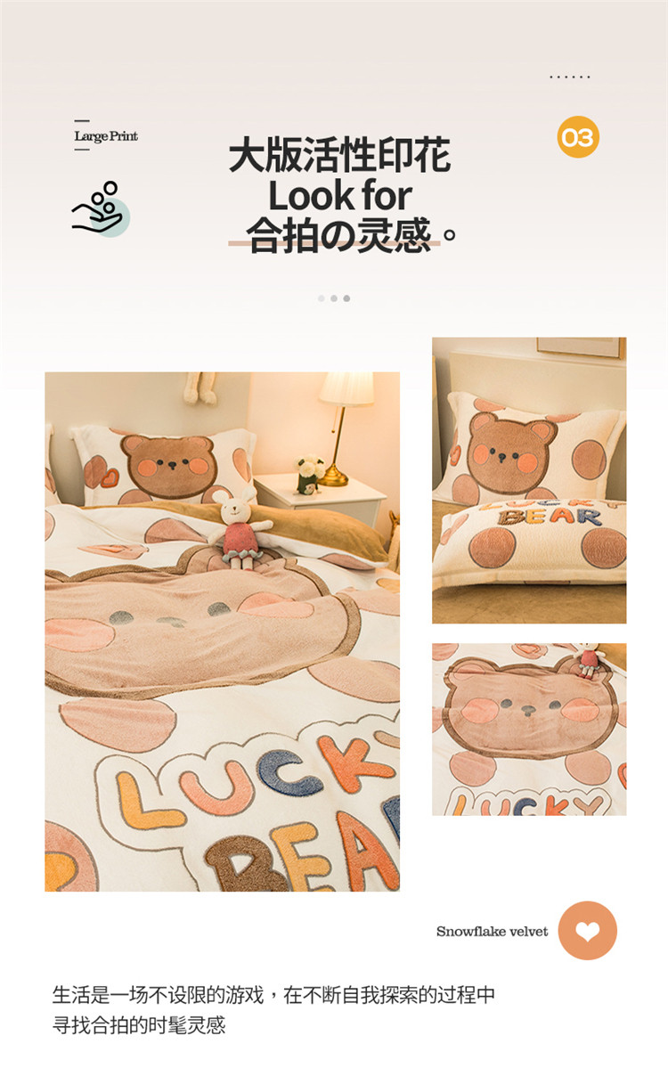 商品名称:懒猫家纺 2021新款大版雪花绒四件套 贝尔熊