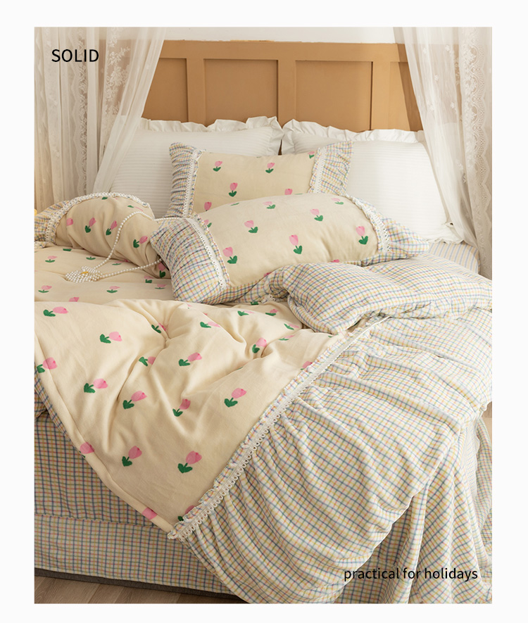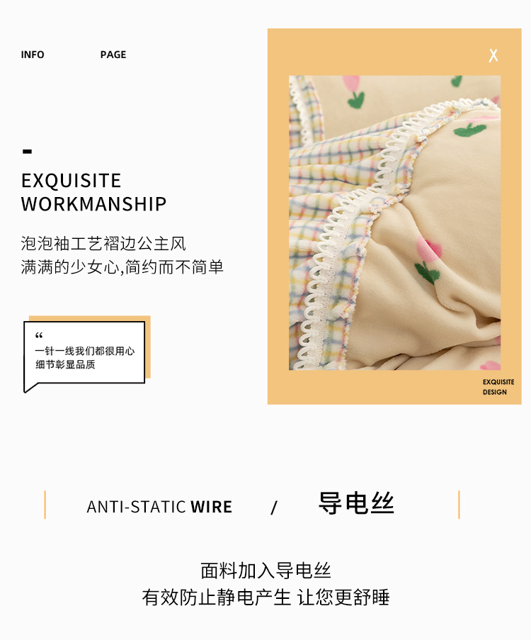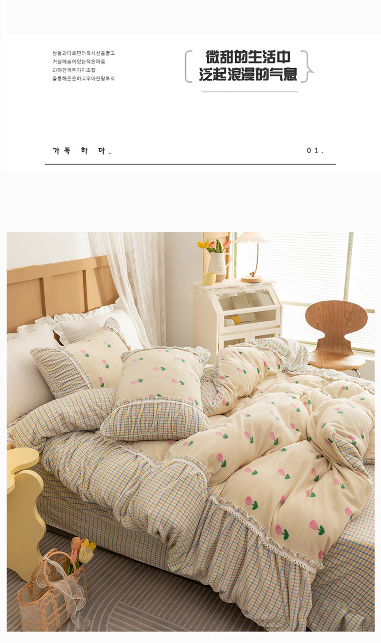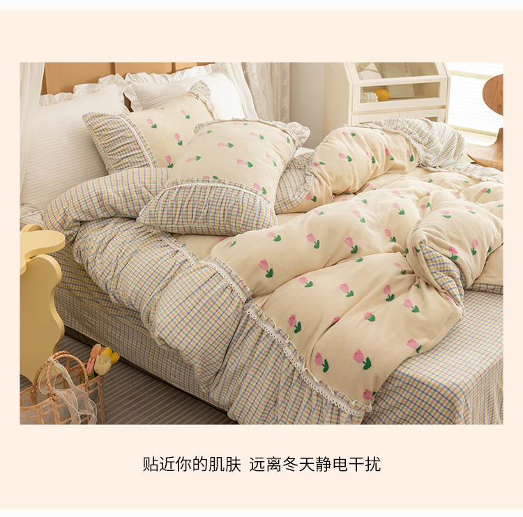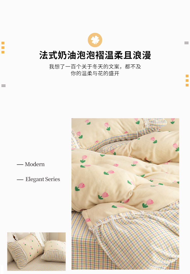 金爱家 2021新款直播热卖牛奶绒220g泡泡袖四件套 小郁金香