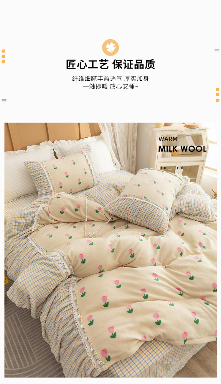 商品名称:金爱家 2021新款直播热卖牛奶绒220g泡泡袖四件套 小郁金香