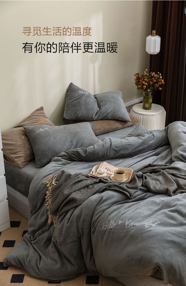 (总)寐眠 2025新款A类立体雕花牛奶绒四件套-系列二,灰韵暖叶,暖棕雅致,青柠暖枝,柔粉暖絮
