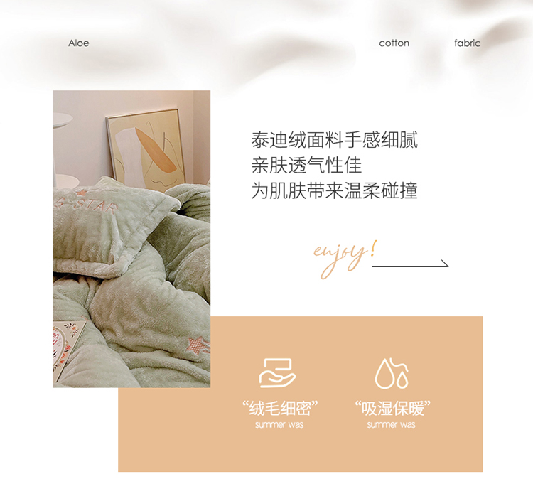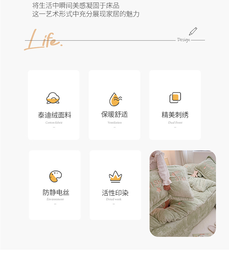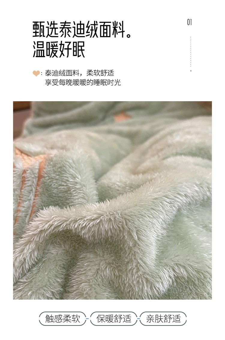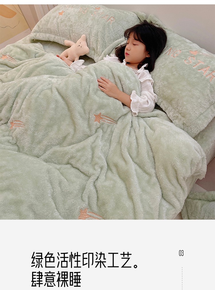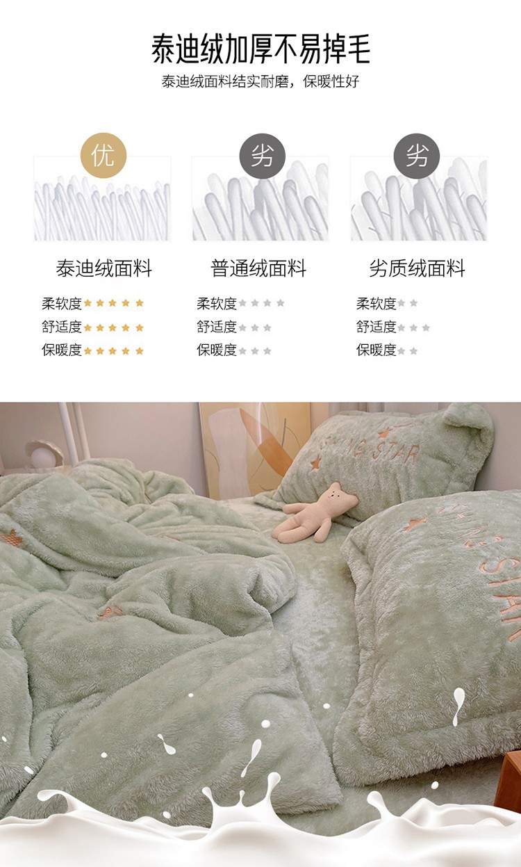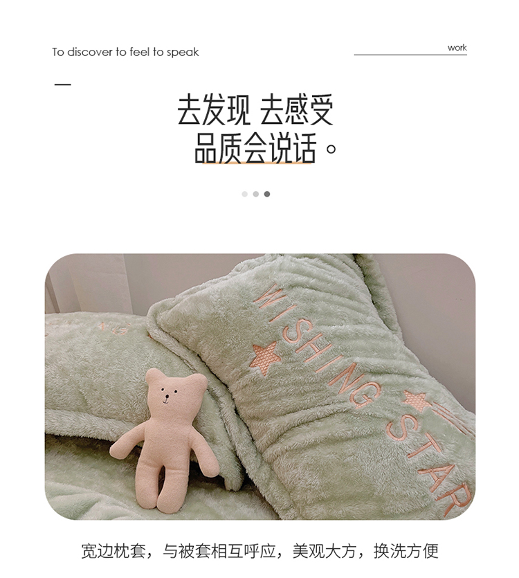 商品名称:雅居纺 2022新款泰迪绒绣花四件套拍摄风格1 许愿星-果绿