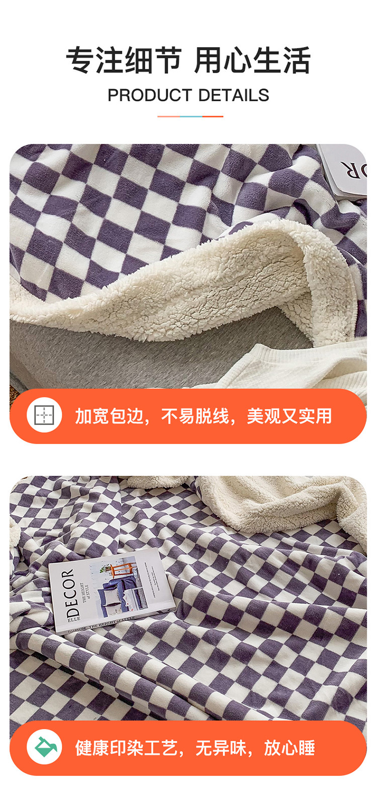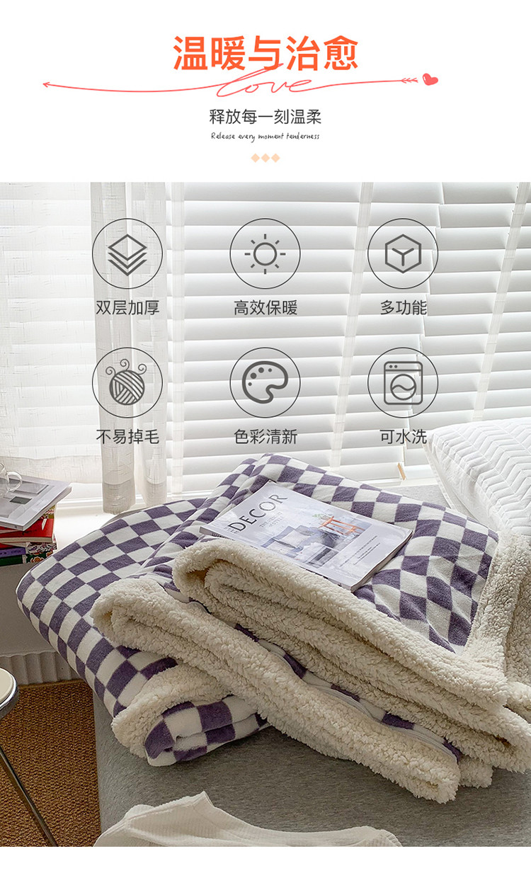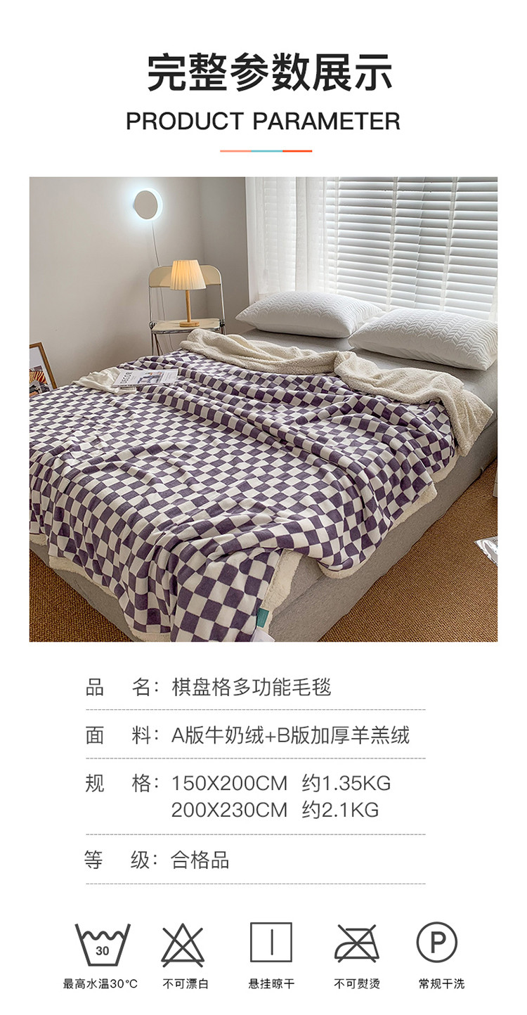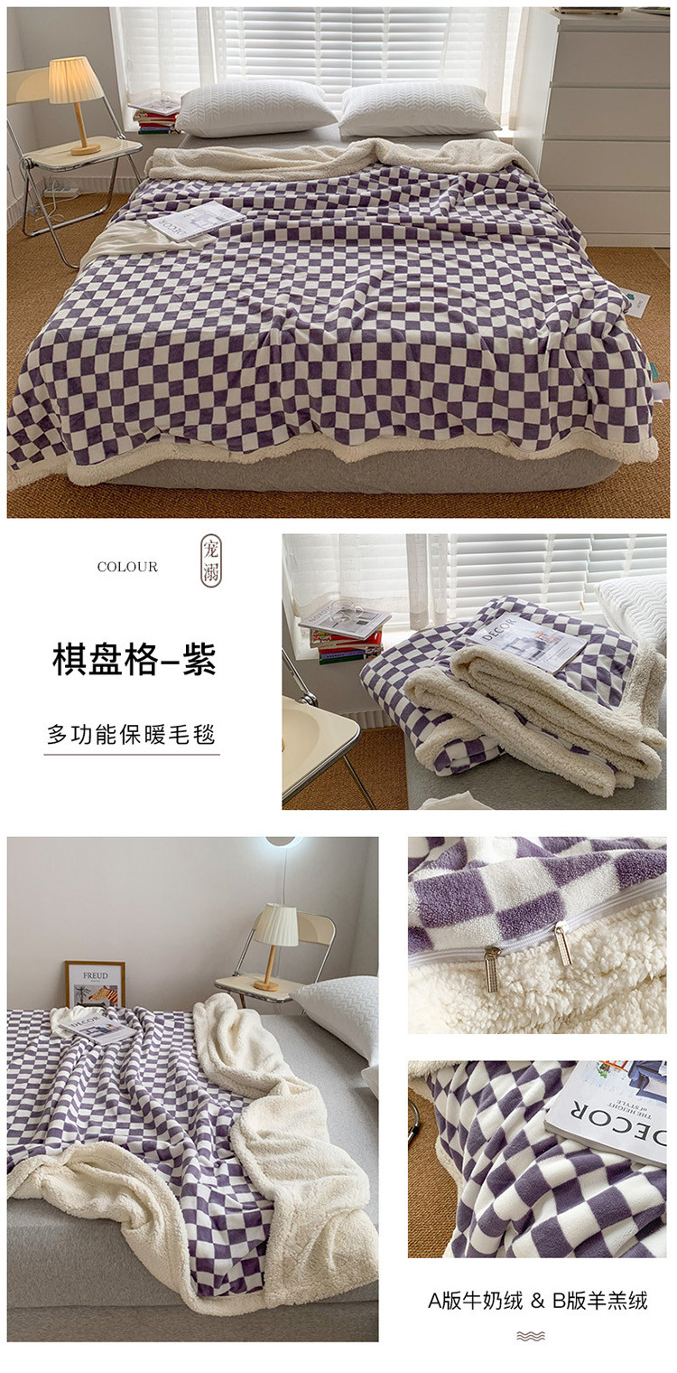 商品名称:网客家纺 2024新款棋盘格多功能毯 紫