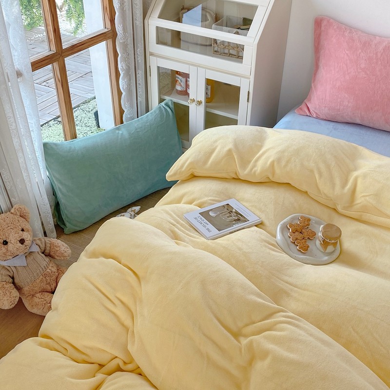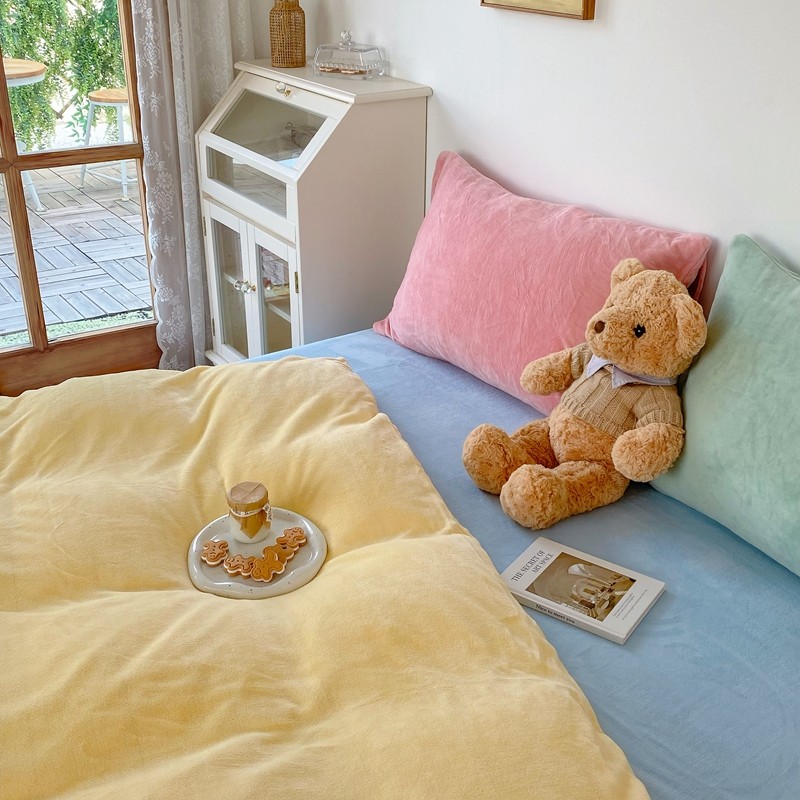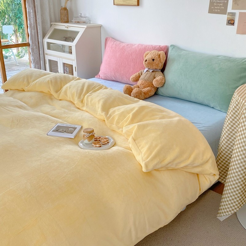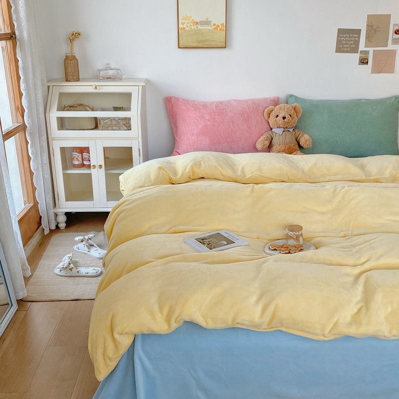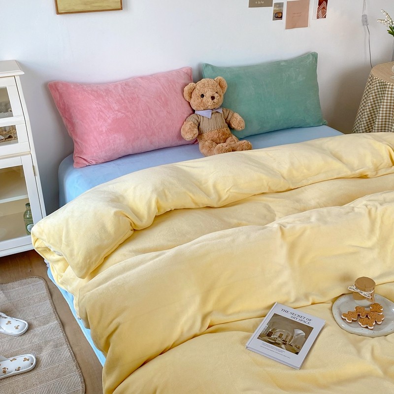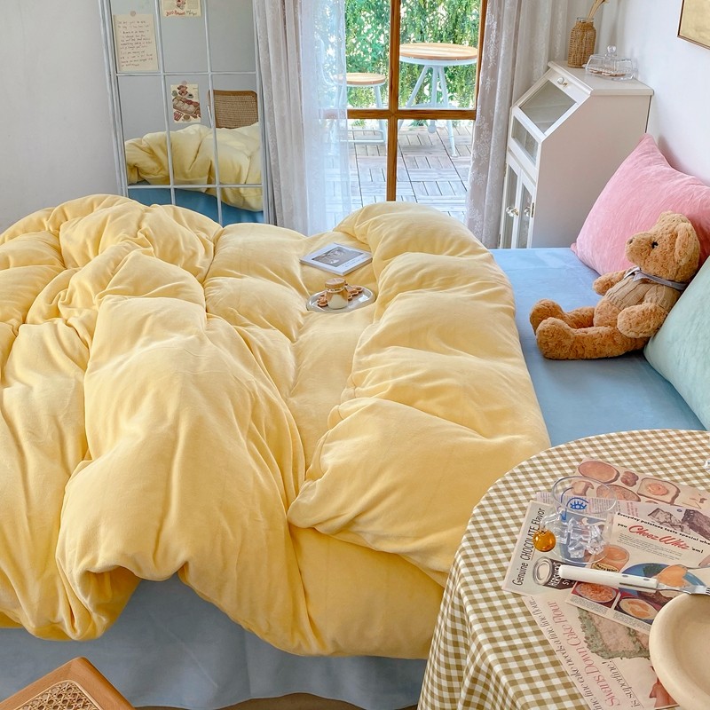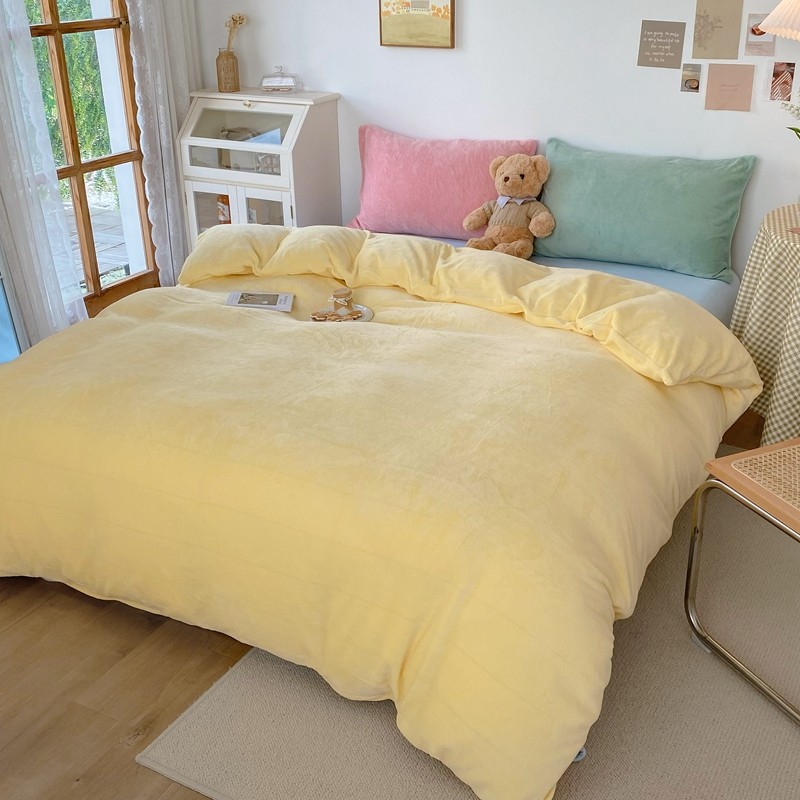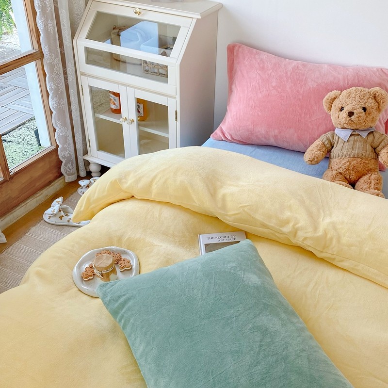 星期八 2021新款马卡龙牛奶绒四件套 黄-蓝