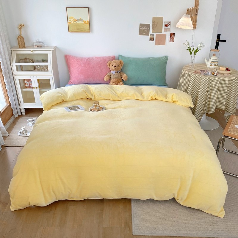 商品名称:星期八 2021新款马卡龙牛奶绒四件套 黄-蓝