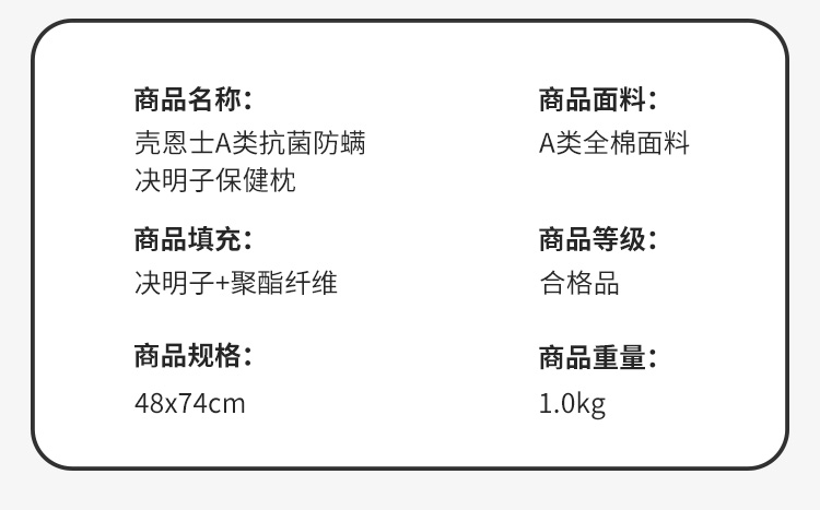 商品名称:(总)梦叶草 2021新款壳恩士抗菌防螨决明子保健枕