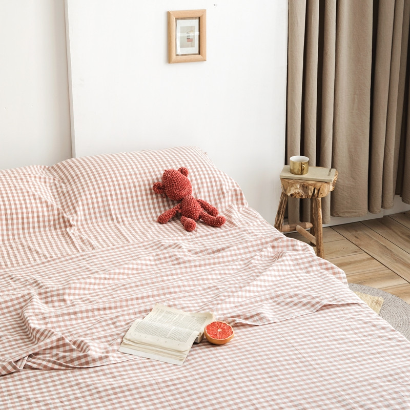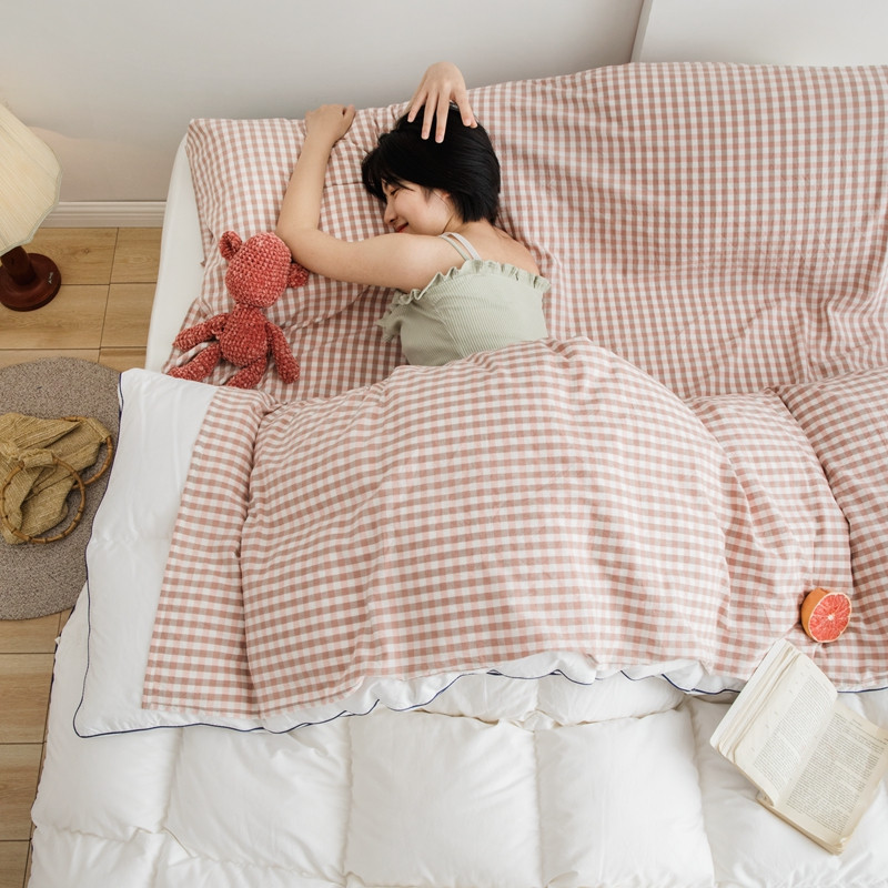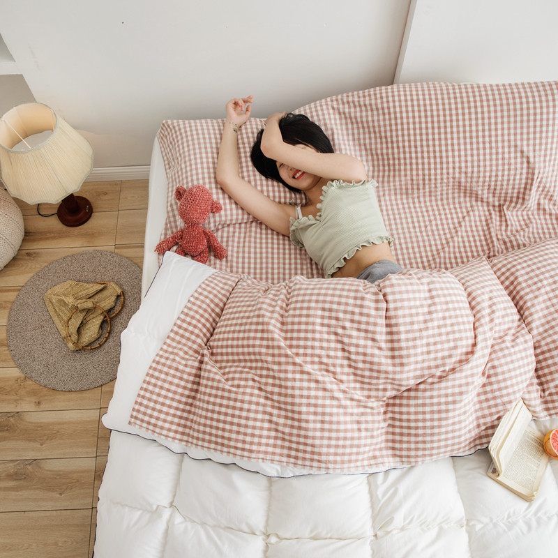 安莱生活 2021新款全棉水洗棉色织睡袋 粉小格