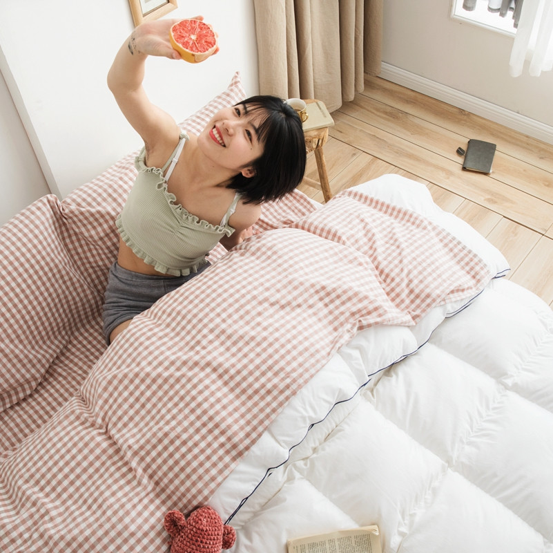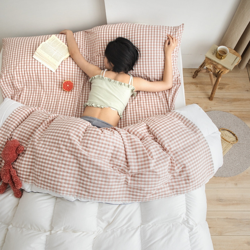 商品名称:安莱生活 2021新款全棉水洗棉色织睡袋 粉小格