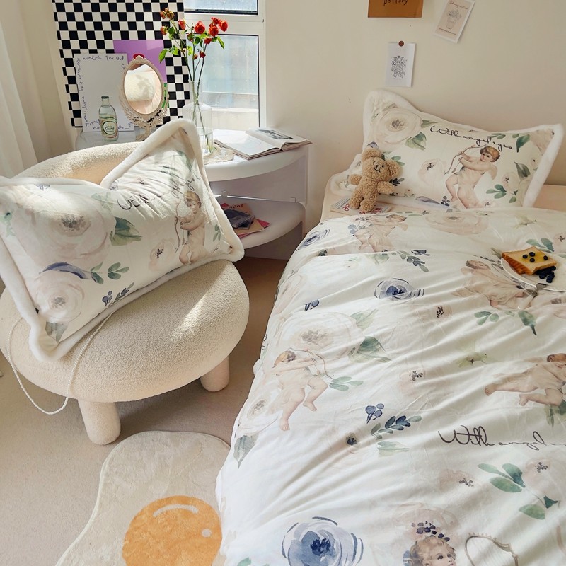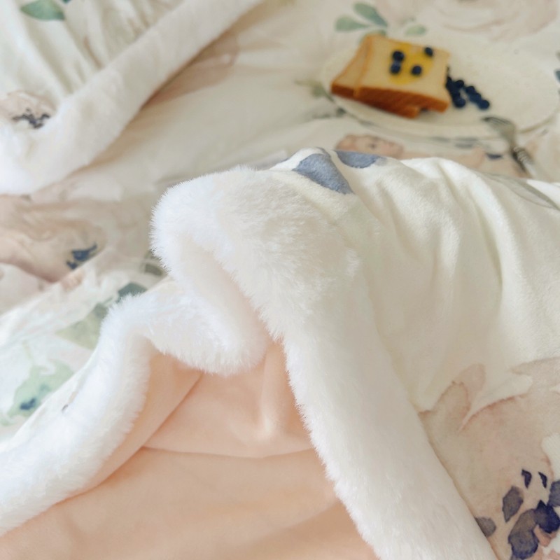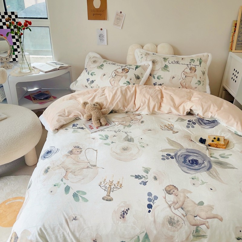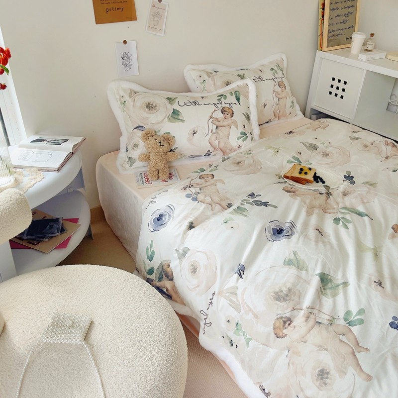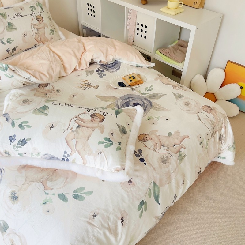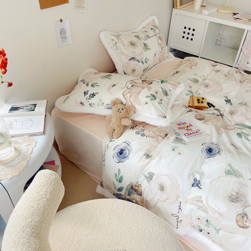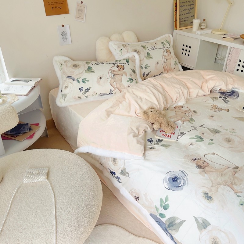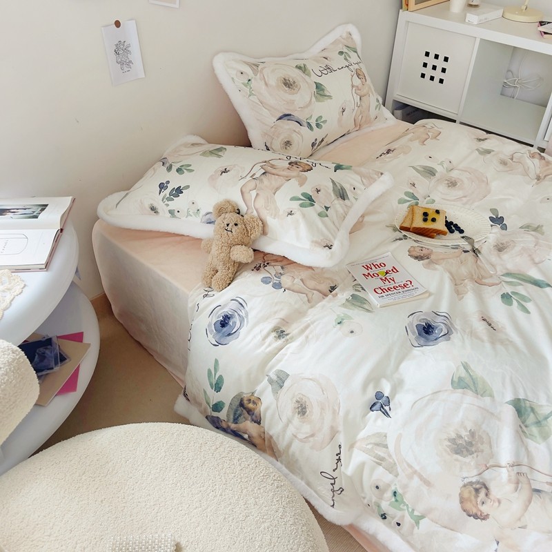 圆岛家纺 新款冬季数码印花高档婴儿绒兔兔绒四件套 复古天使