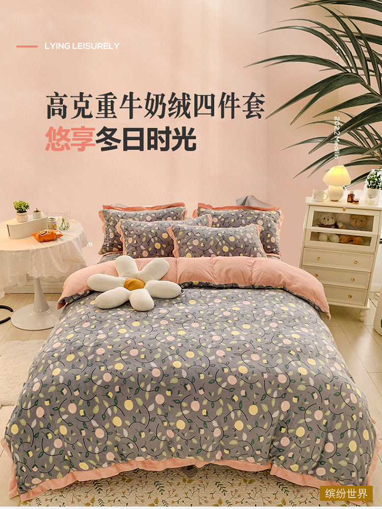 金爱家 2021新款250克牛奶绒四件套 缤纷世界