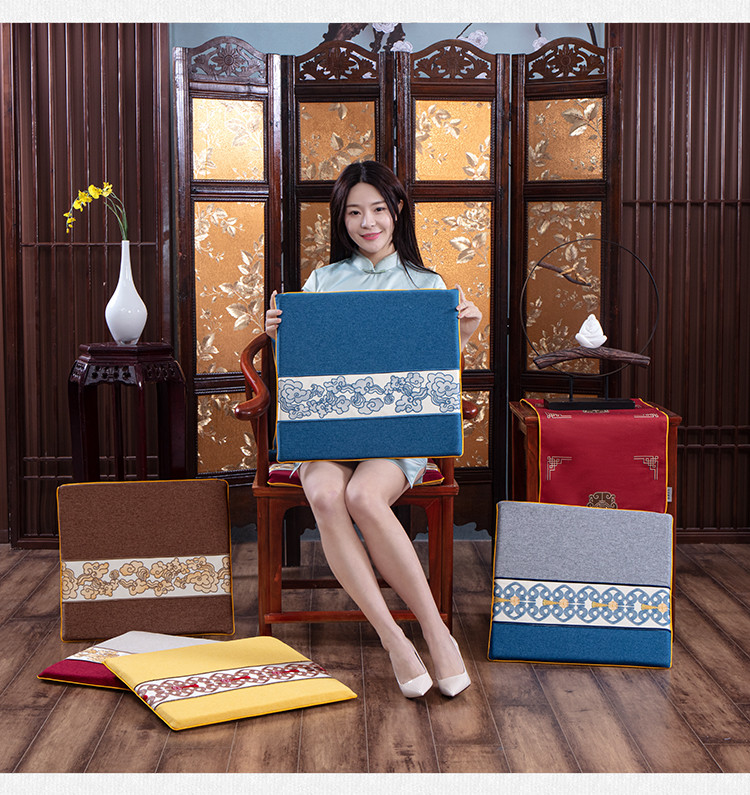 当前位置: 91家纺网 > 商品网购 > 居家布艺 > 坐垫/椅垫/沙发垫 > 椅垫 > 北辰 2021新款棉麻刺绣新中式坐垫红木沙发垫 刺绣中国结-咖色