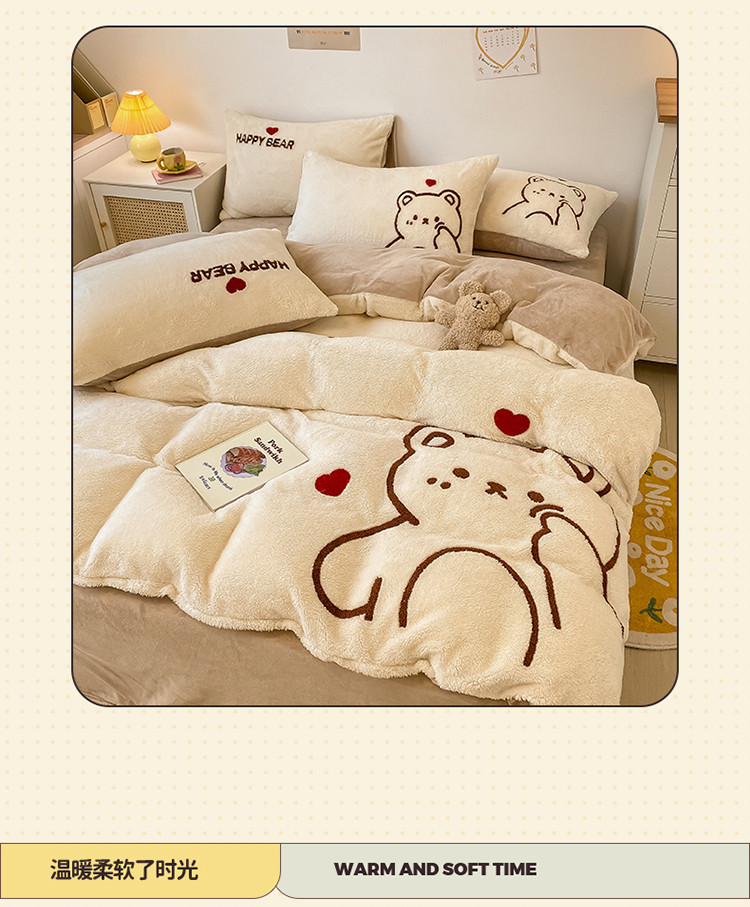 澳梵2021新款韩国进口泰迪绒大版毛巾绣四件套 戳脸小熊