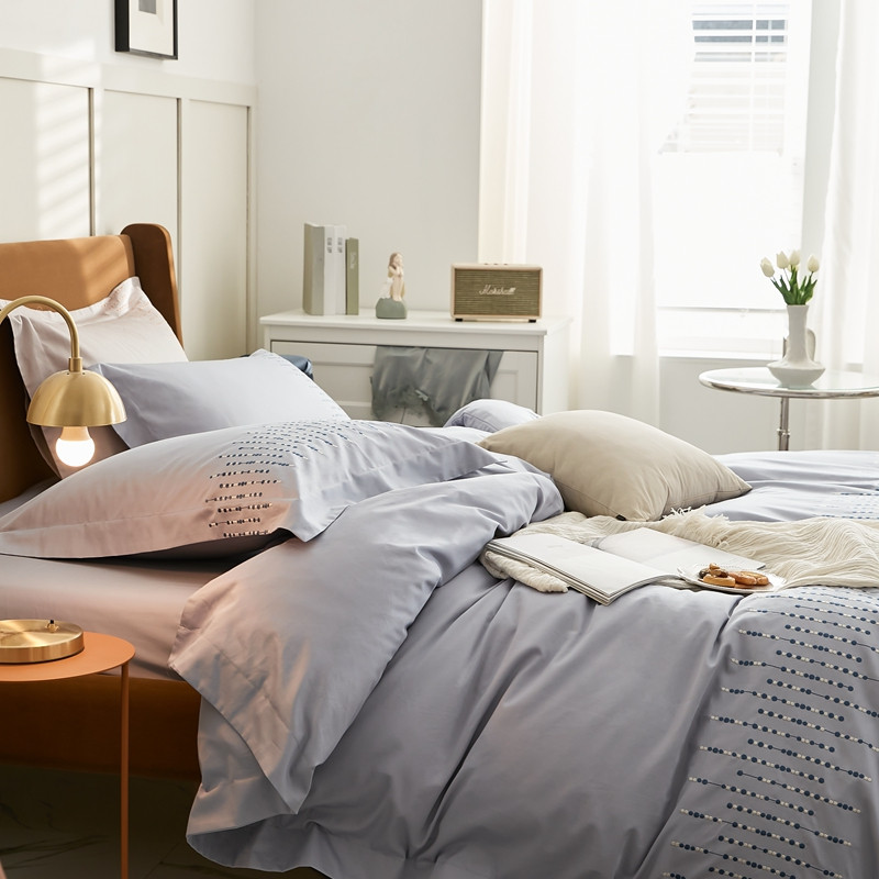 商品名称:涞澳家纺 2021新款50支全棉绣花四件套 伊洛-沥青灰