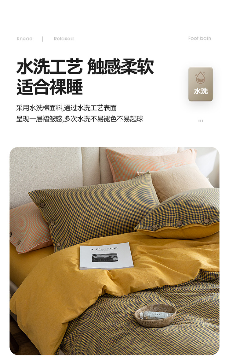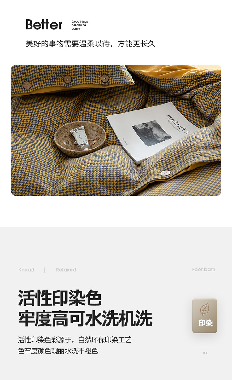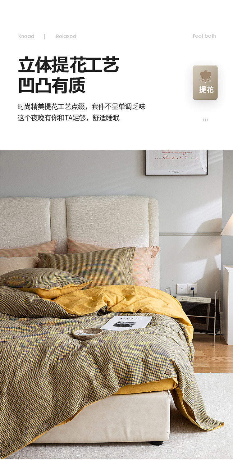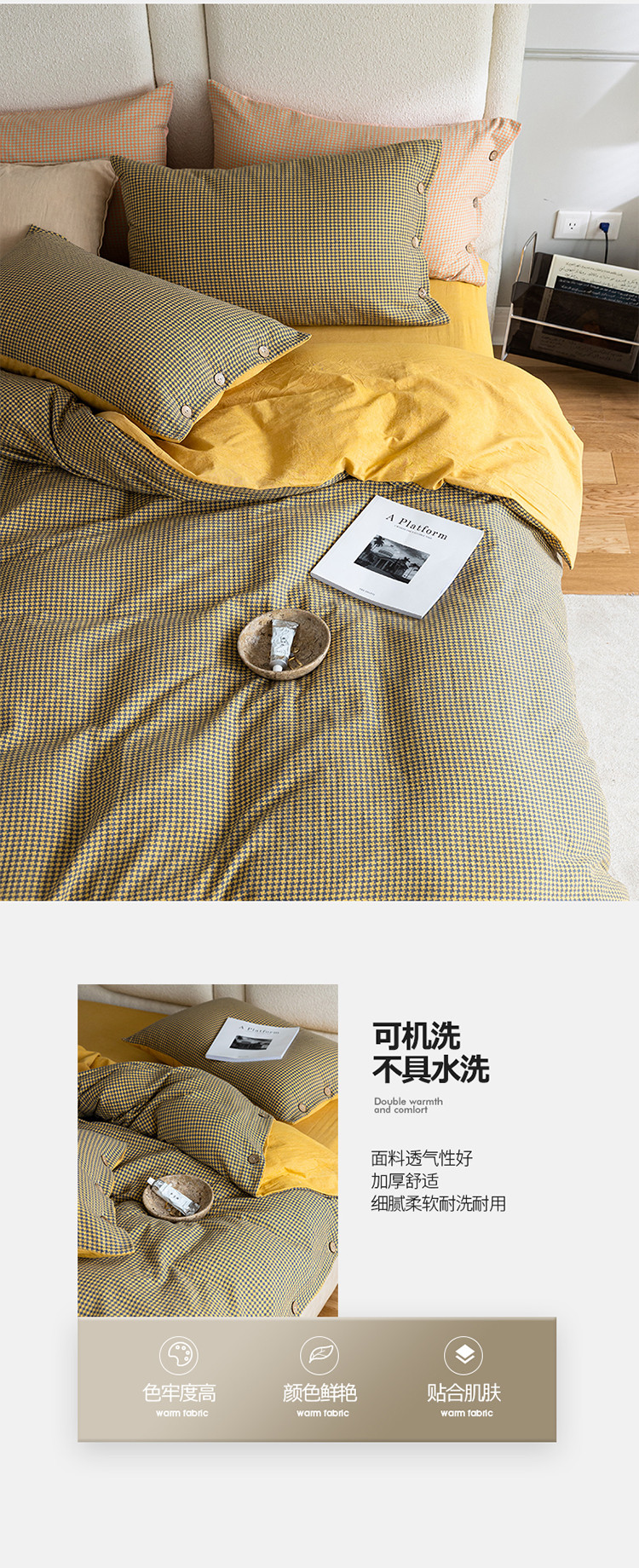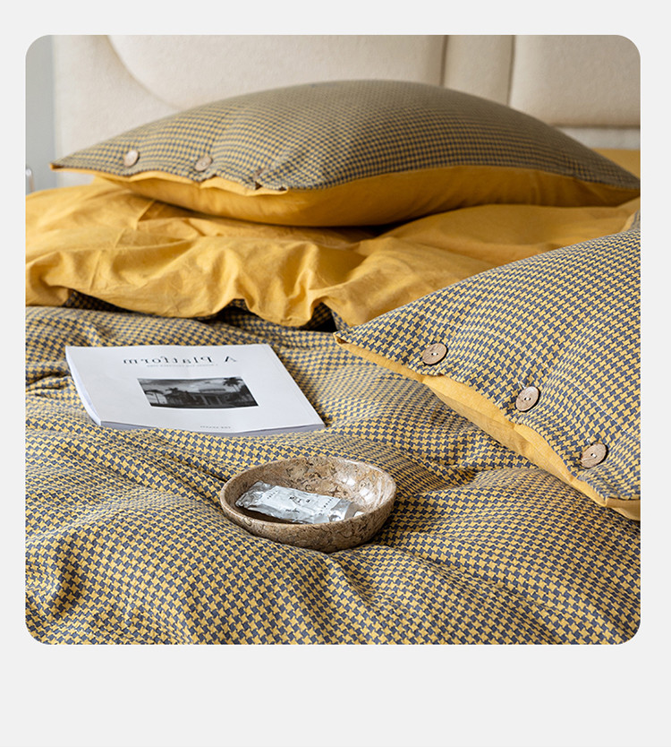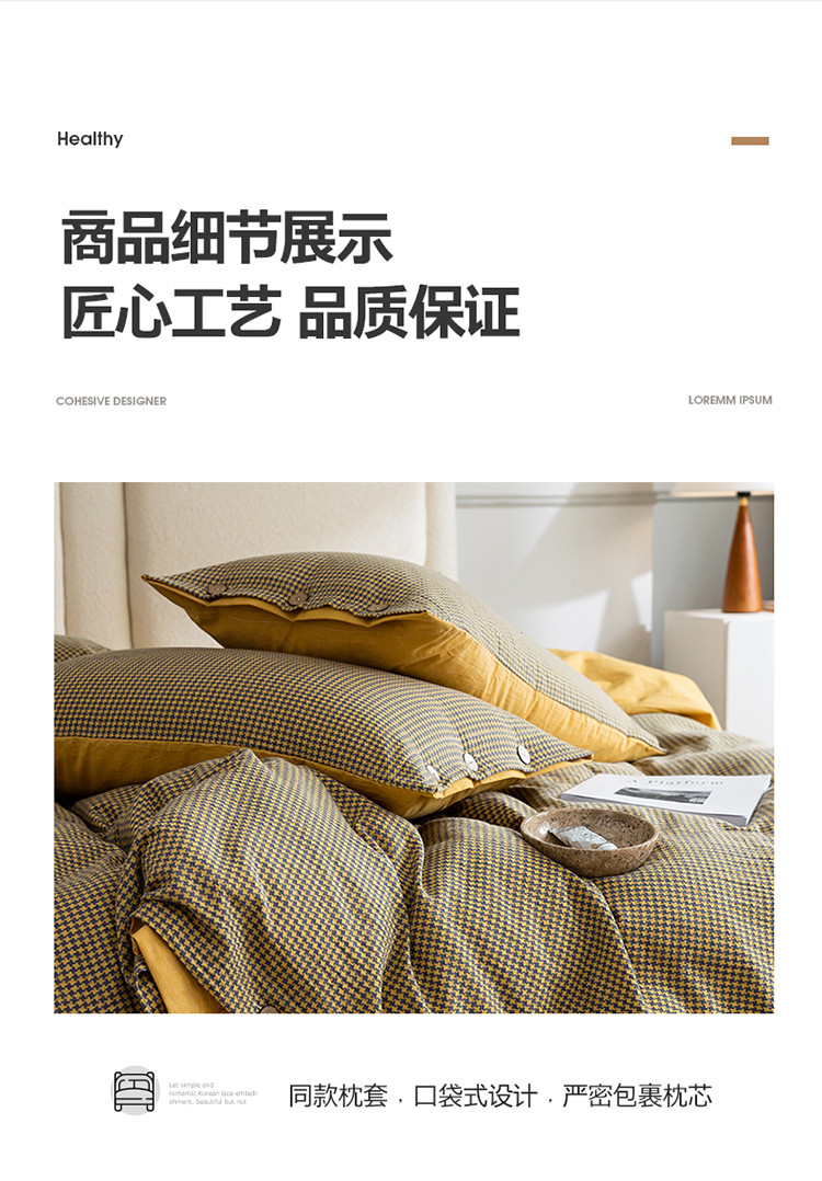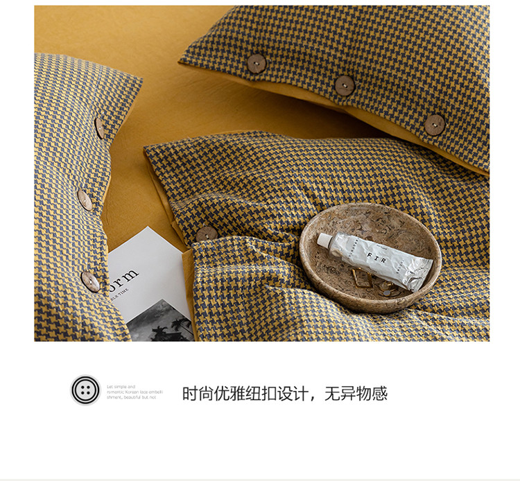 当前位置: 91家纺网 > 商品网购 > 床品套件 > 四件套 > 水洗棉四件套 > 寐眠 2022新款A类水洗棉提花千鸟格四件套 千鸟格黄