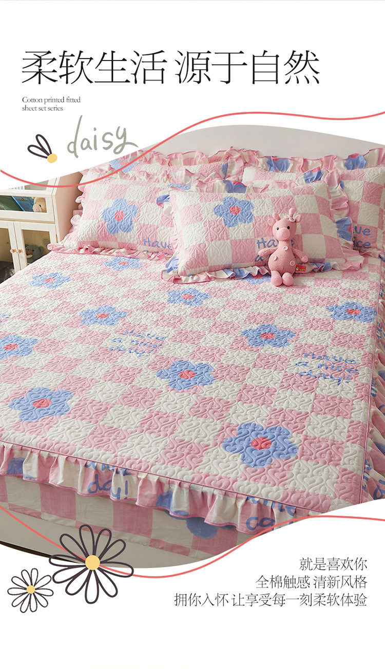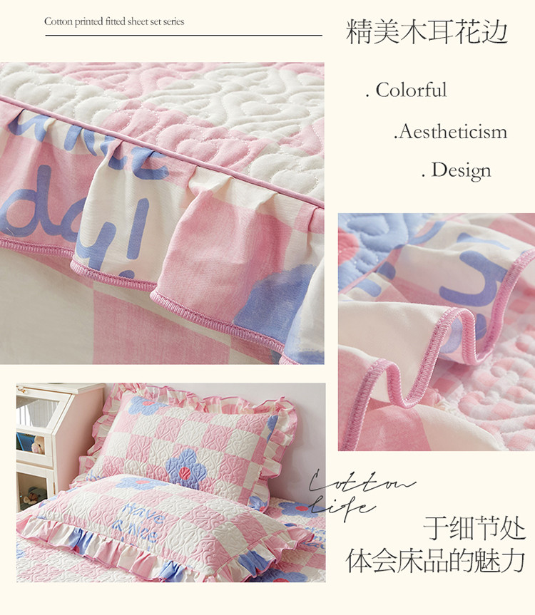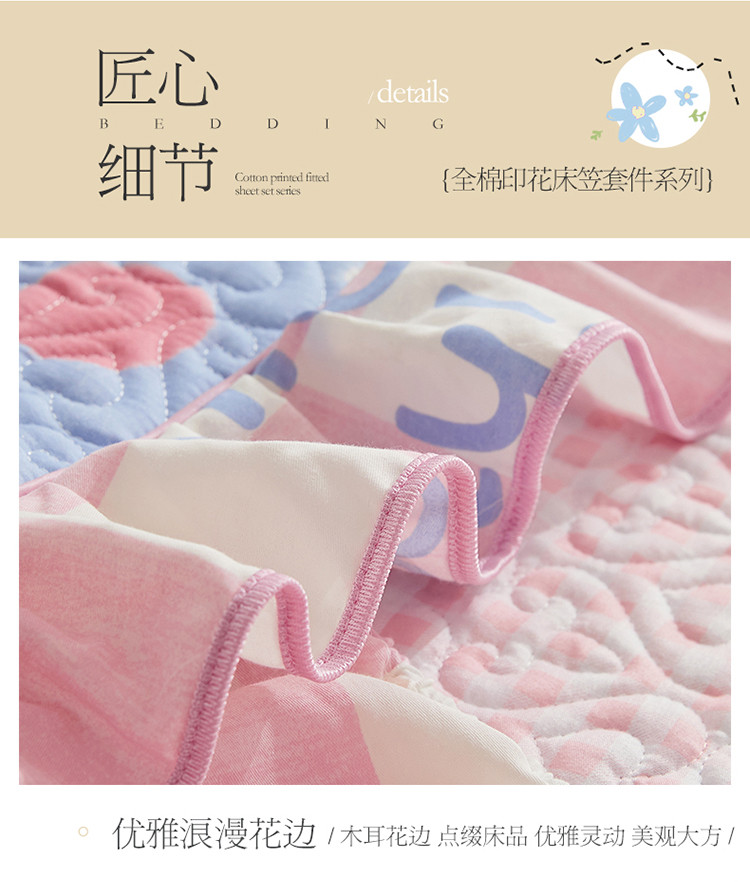 (总)宜凡家纺 2023新款全棉印花花边床笠三件套