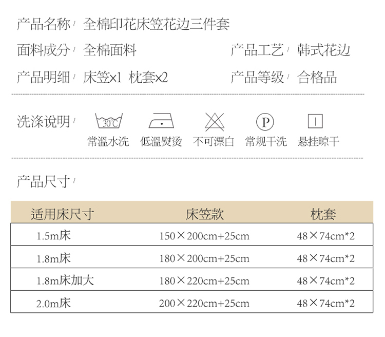 商品名称:(总)宜凡家纺 2023新款全棉印花花边床笠三件套