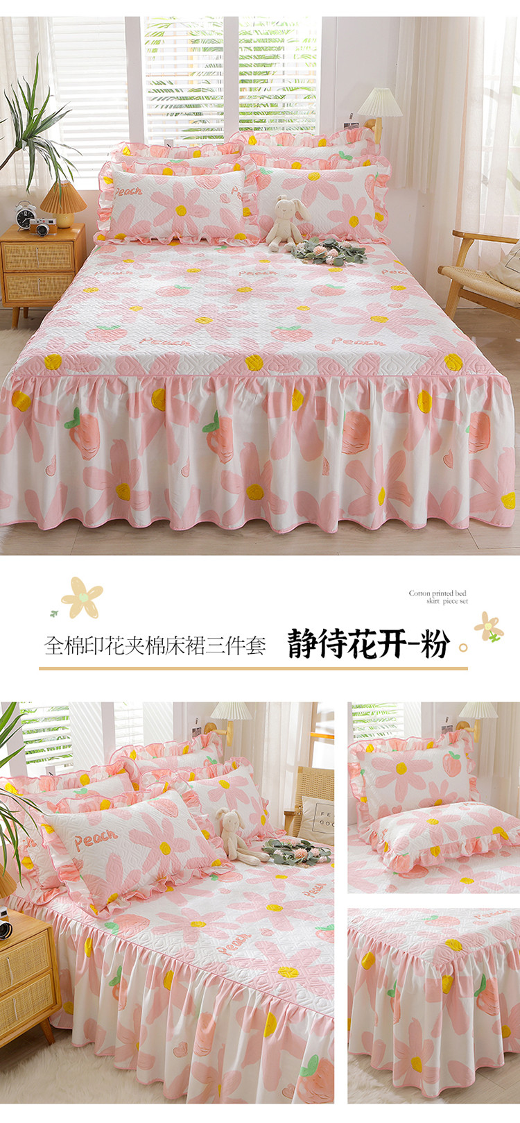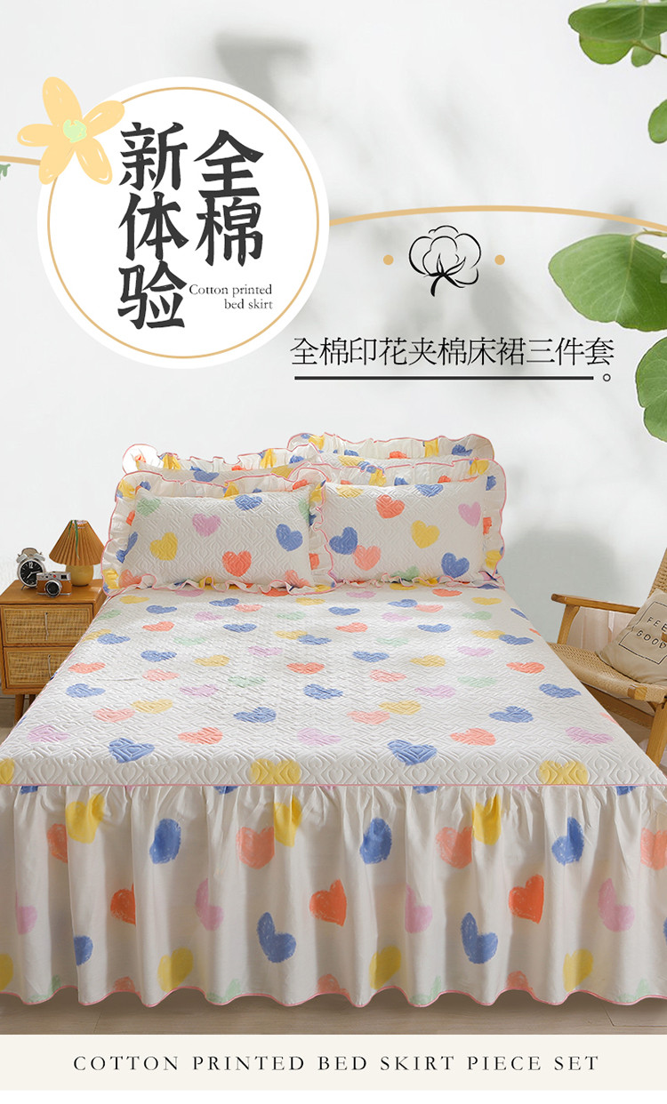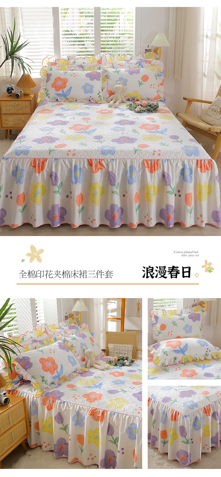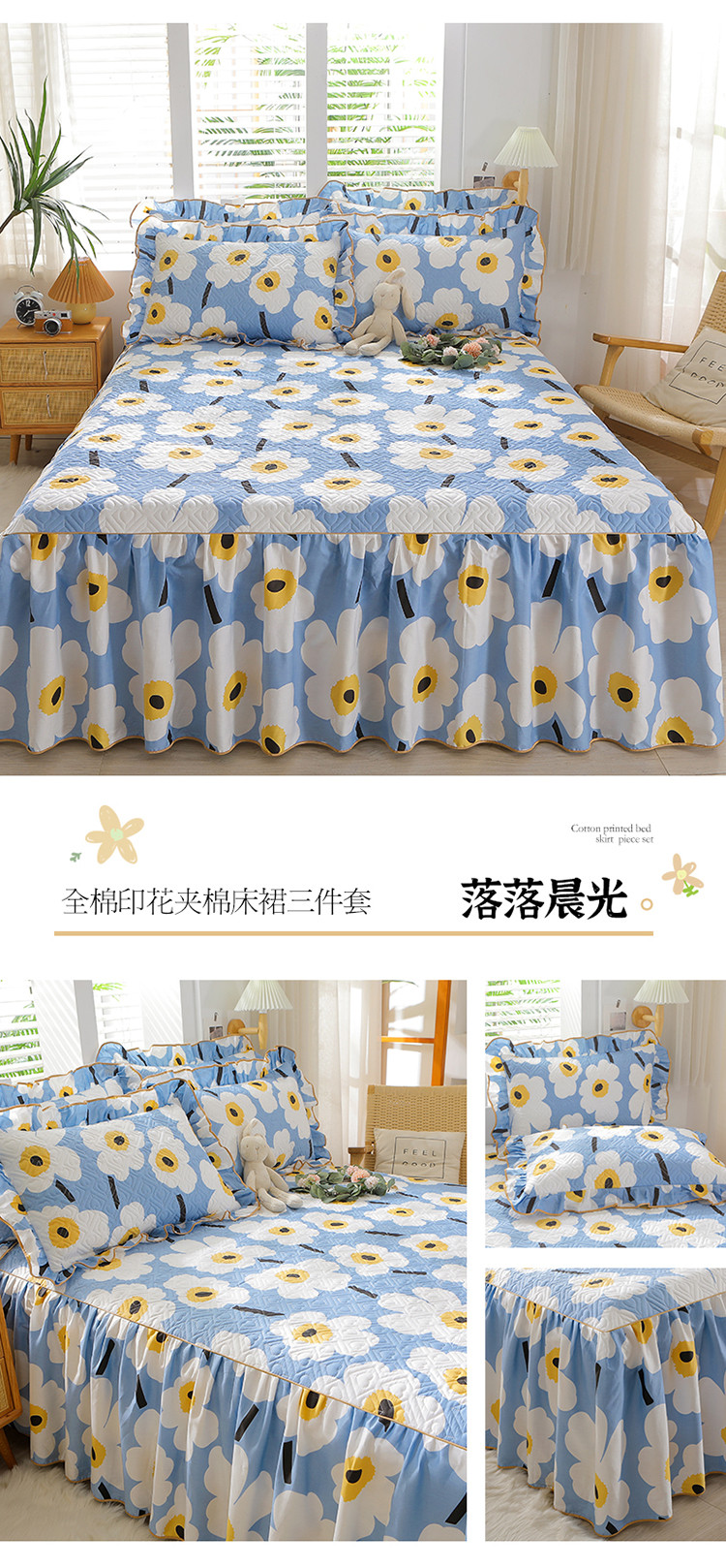 (总)宜凡家纺 2023新款全棉印花花边床裙三件套