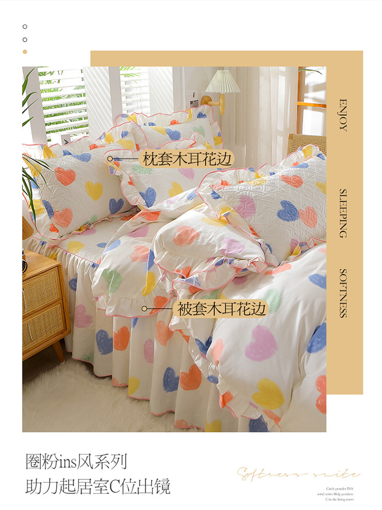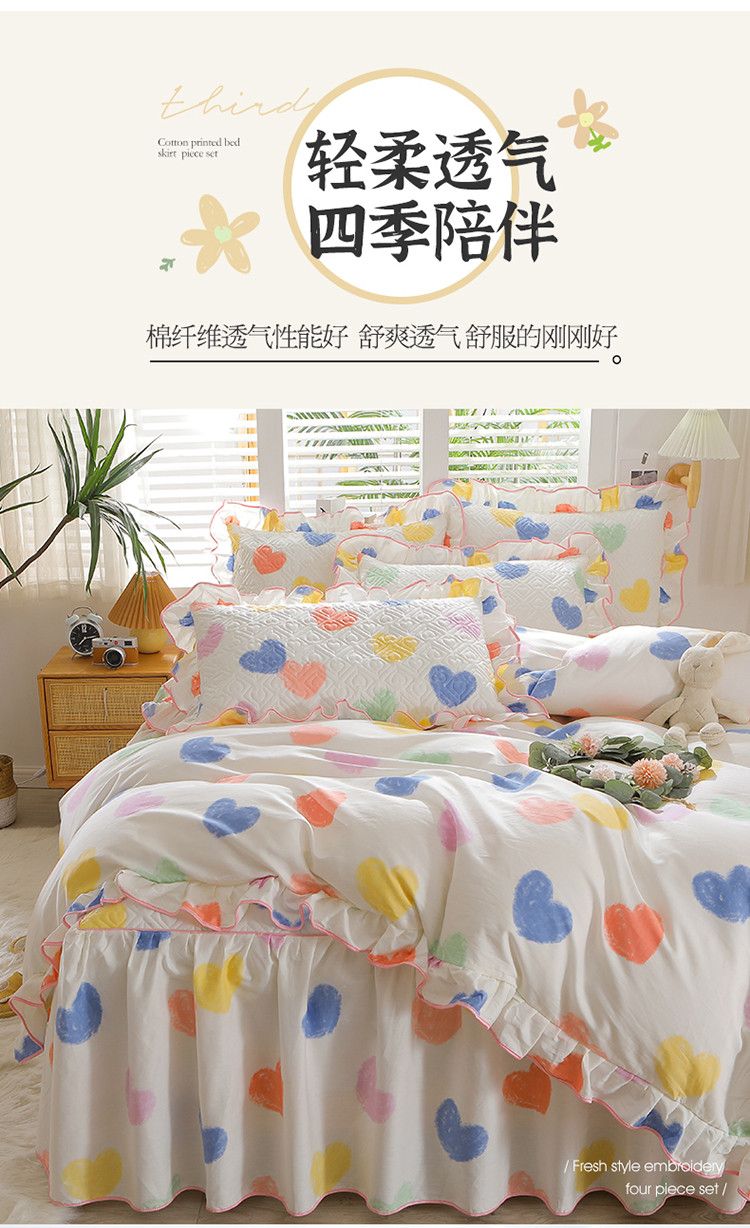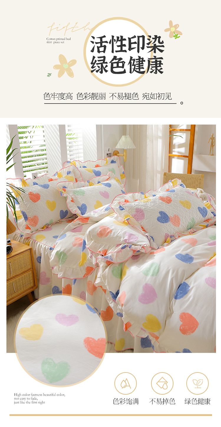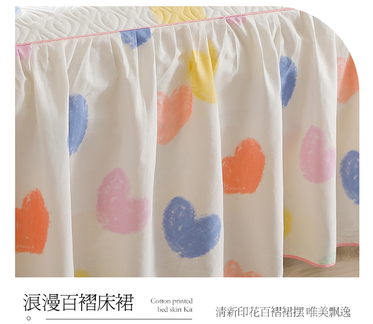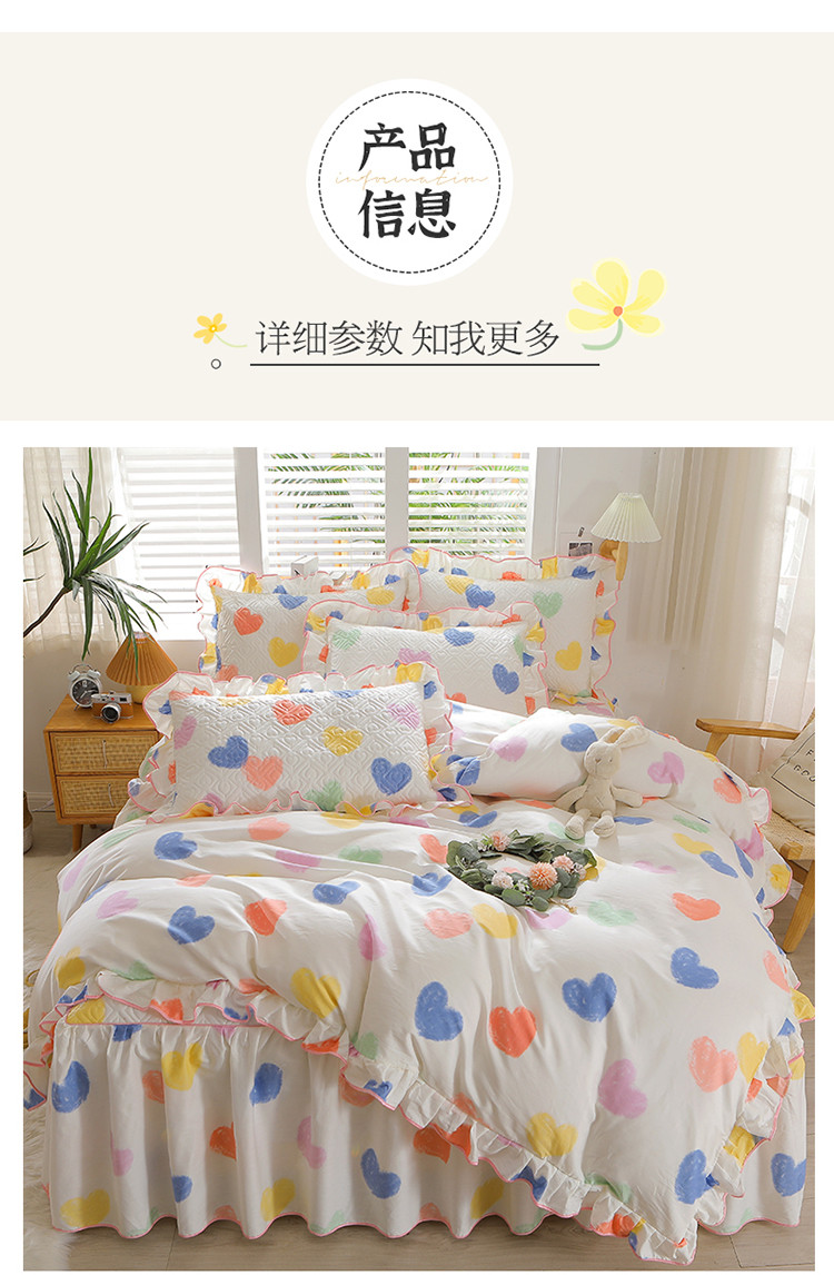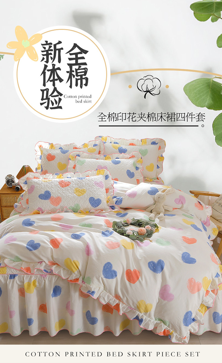 当前位置: 91家纺网 > 商品网购 > 床品套件 > 四件套 > 全棉普通四件套 > 宜凡家纺 2023新款全棉印花花边床裙四件套 彩虹爱心