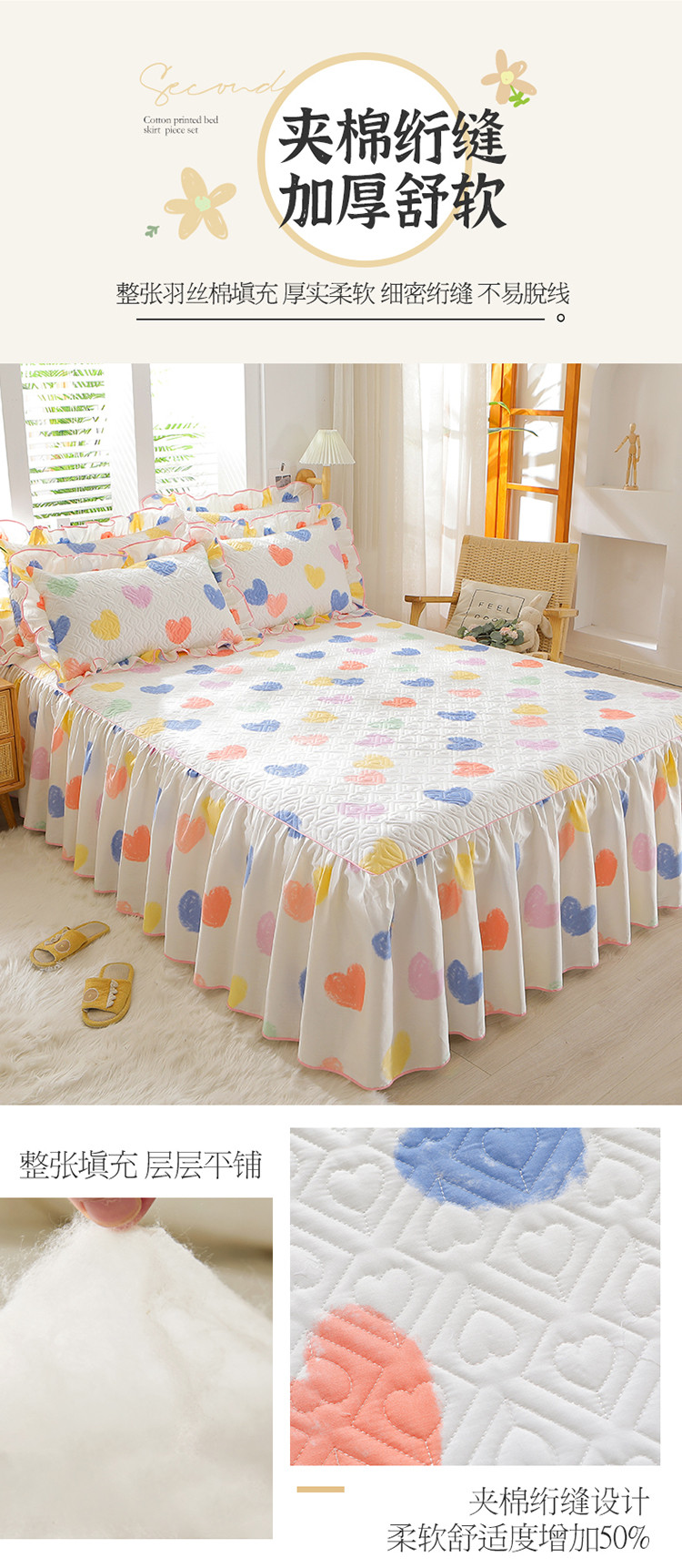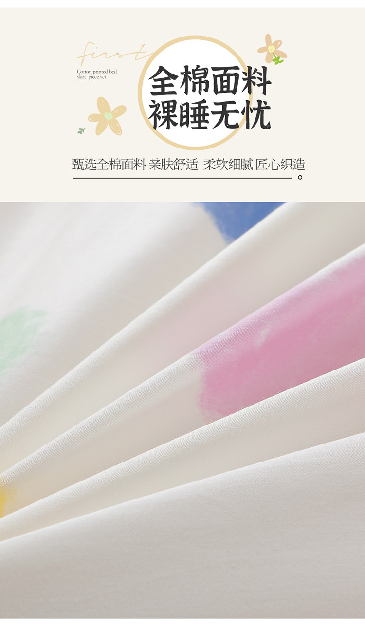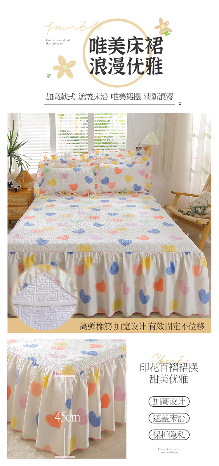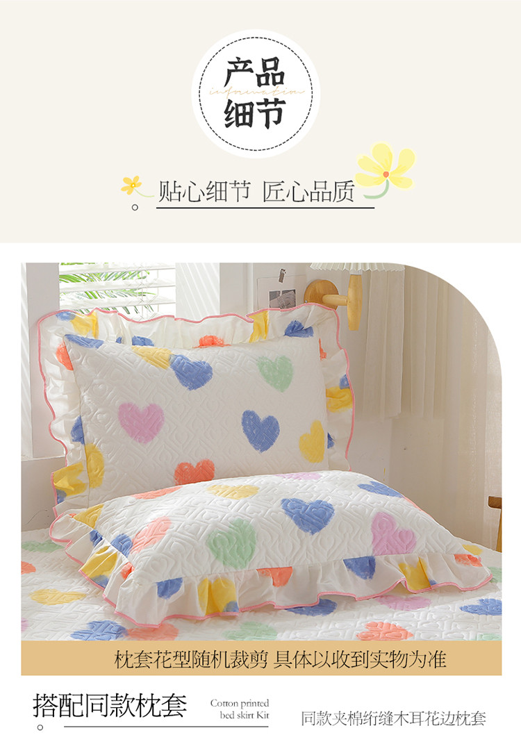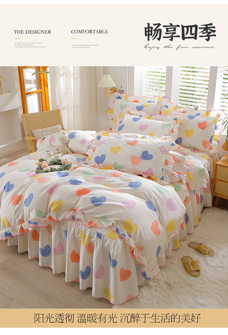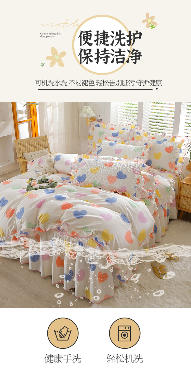 当前位置: 91家纺网 > 商品网购 > 床品套件 > 四件套 > 全棉普通四件套 > 宜凡家纺 2023新款全棉印花花边床裙四件套 彩虹爱心