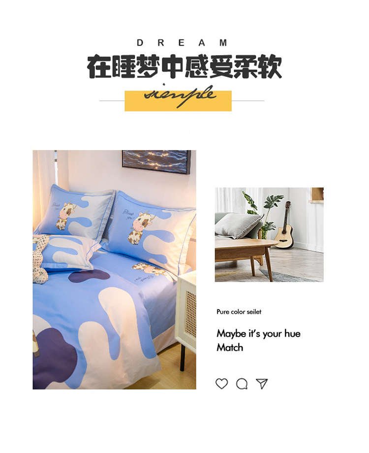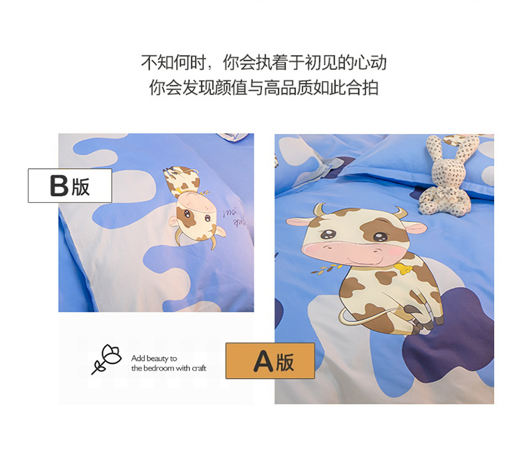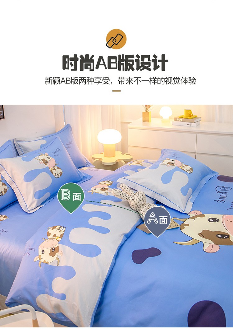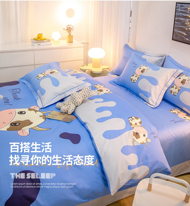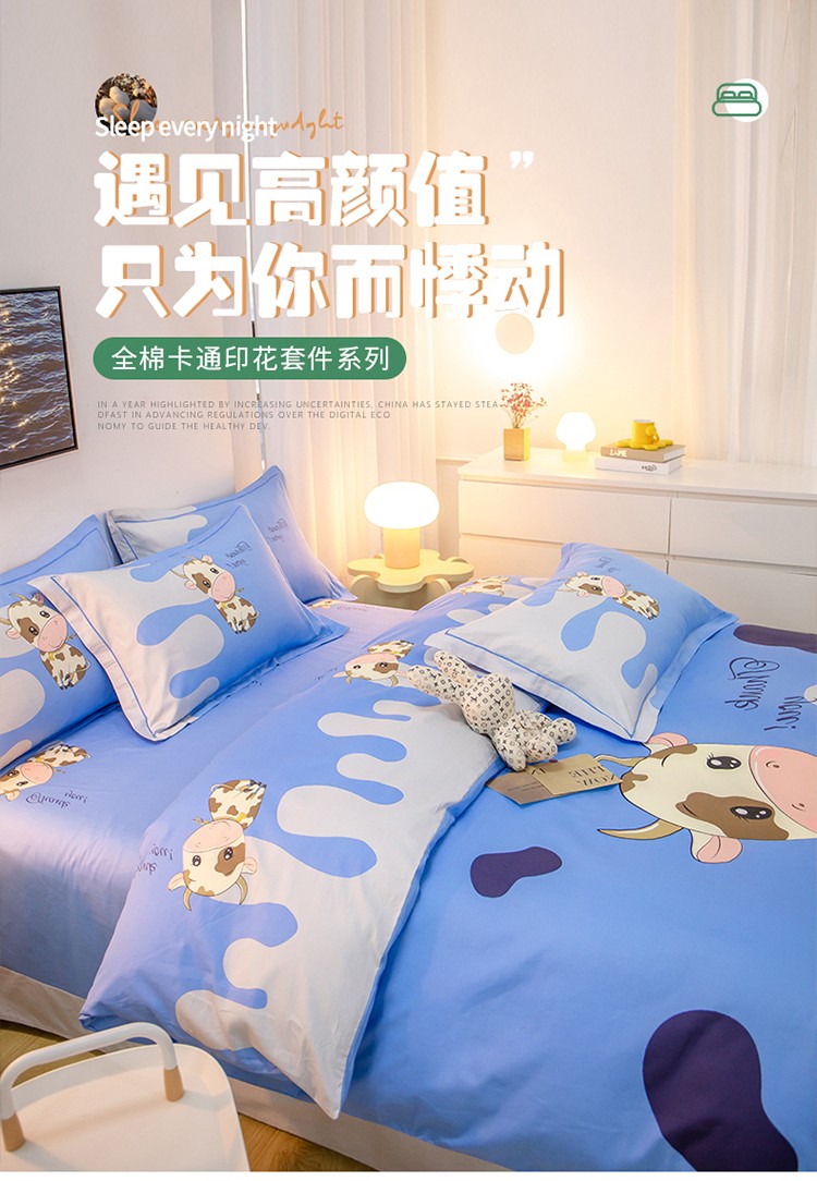 商品名称:雲归梦 2022新款全棉大版四件套 卡通花型 奶牛情思