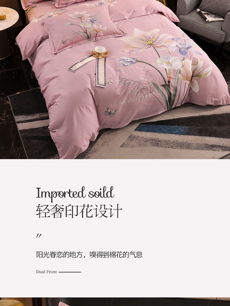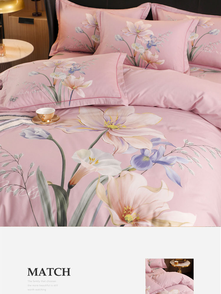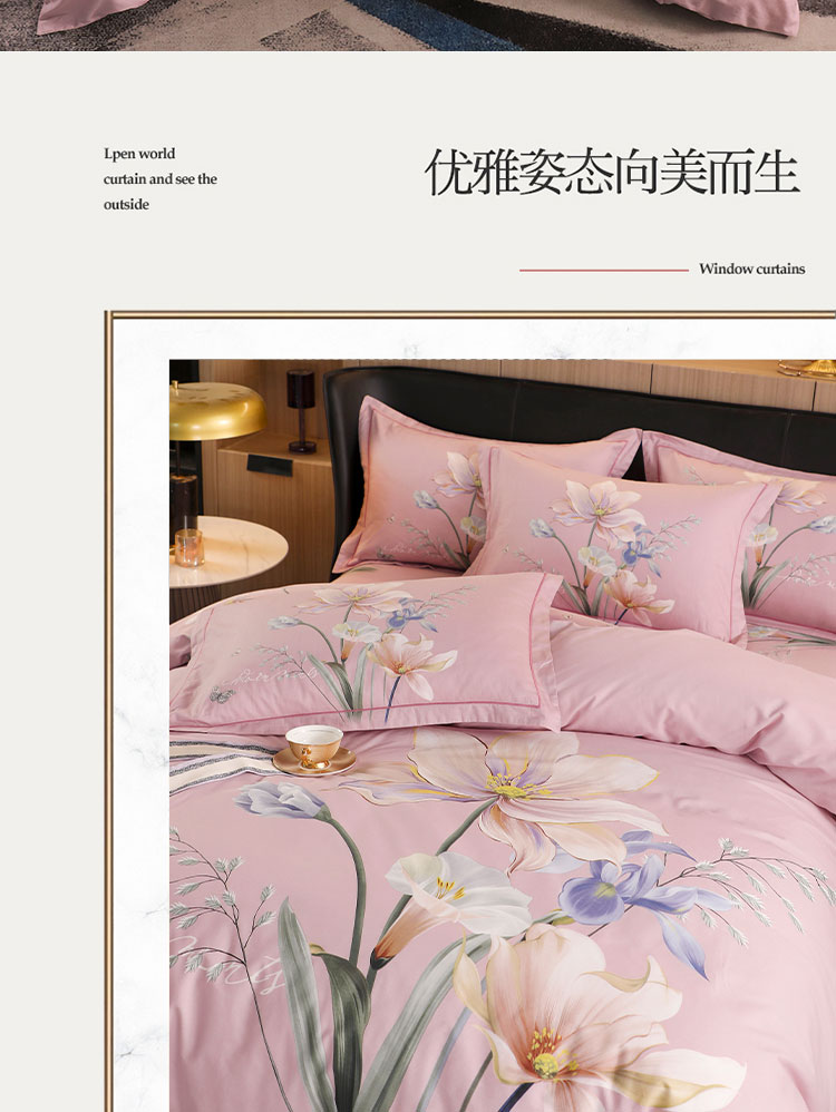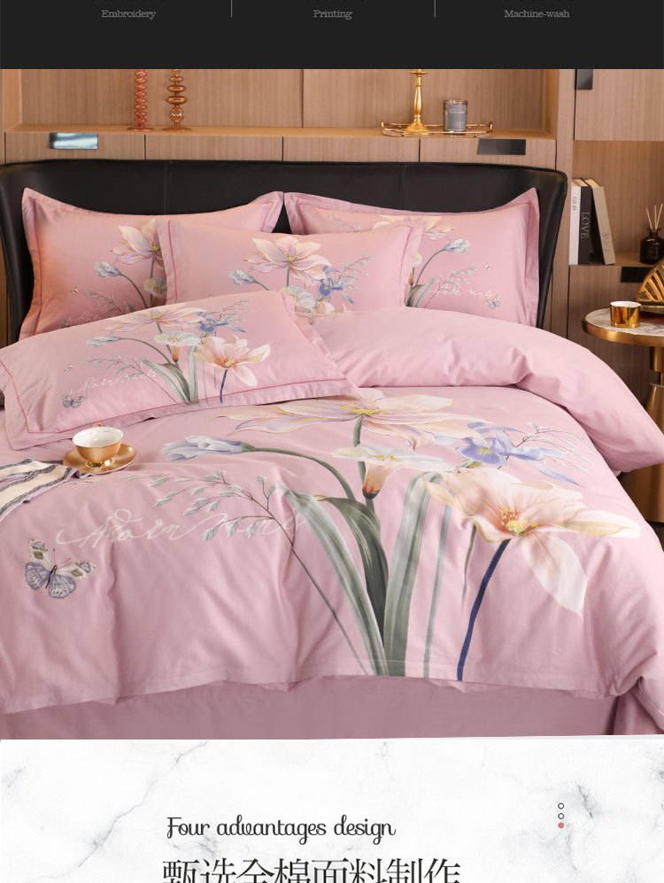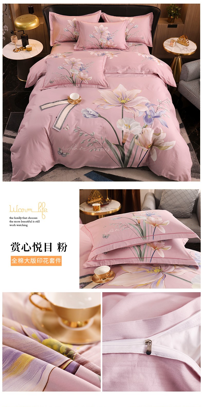 雲归梦 2022新款全棉大版四件套 花卉花型 赏心悦目-粉