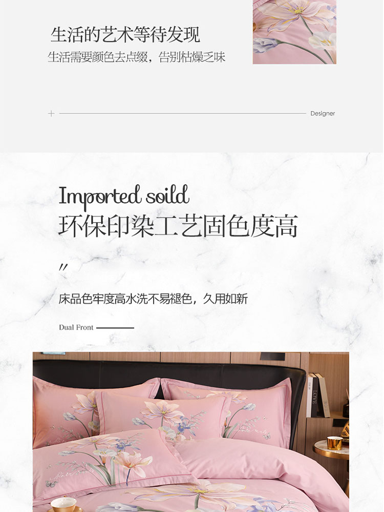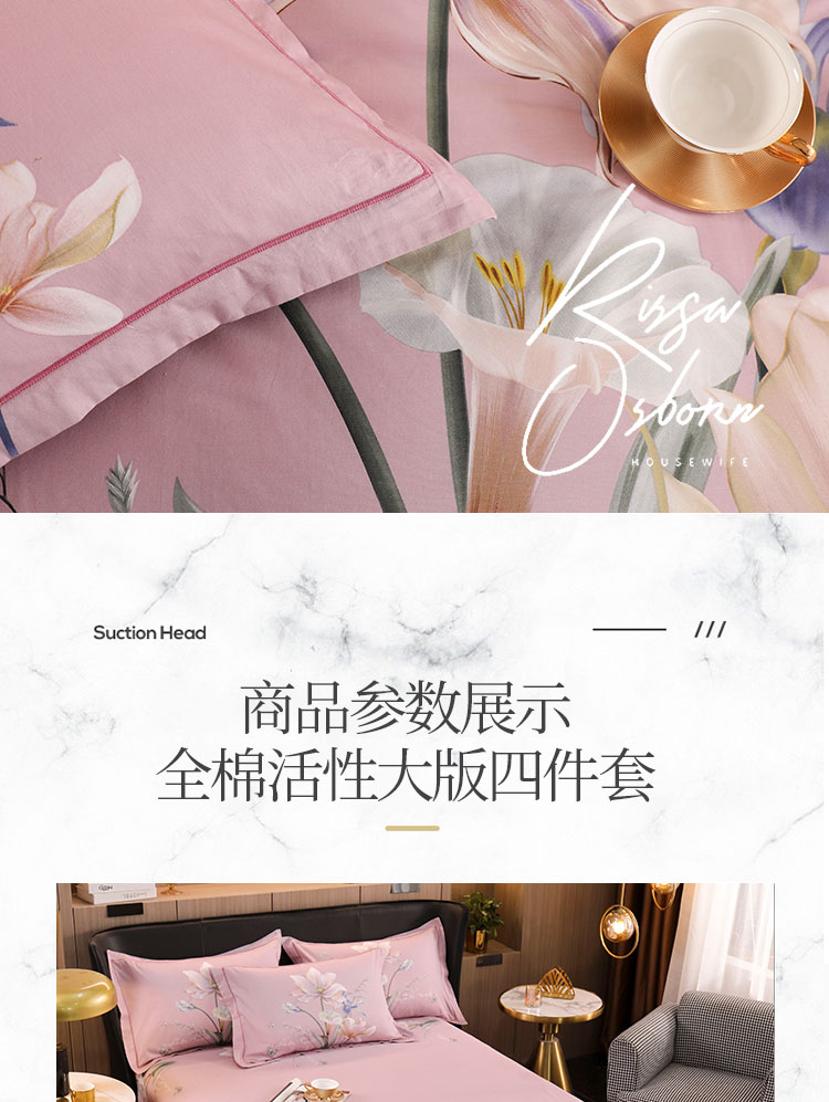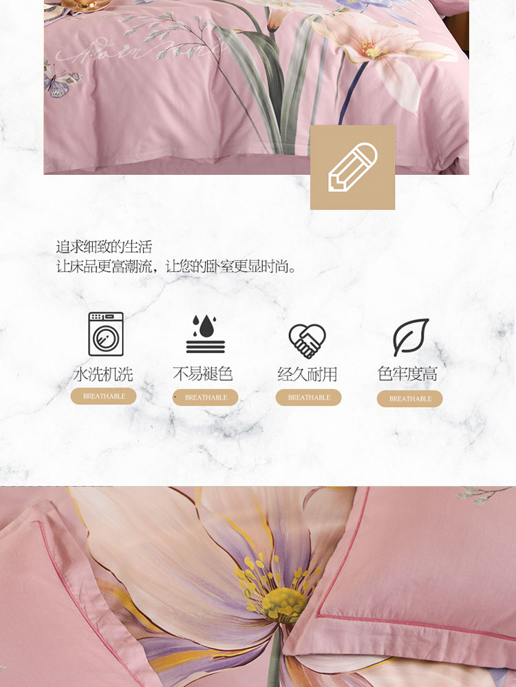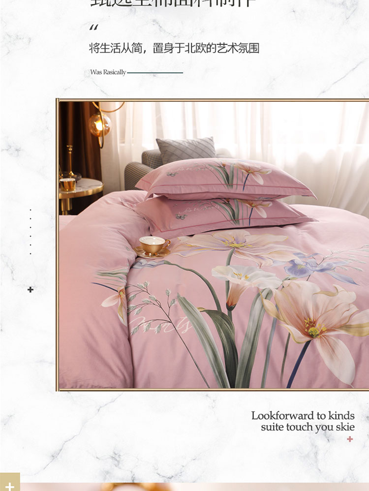 商品名称:雲归梦 2022新款全棉大版四件套 花卉花型 赏心悦目-粉