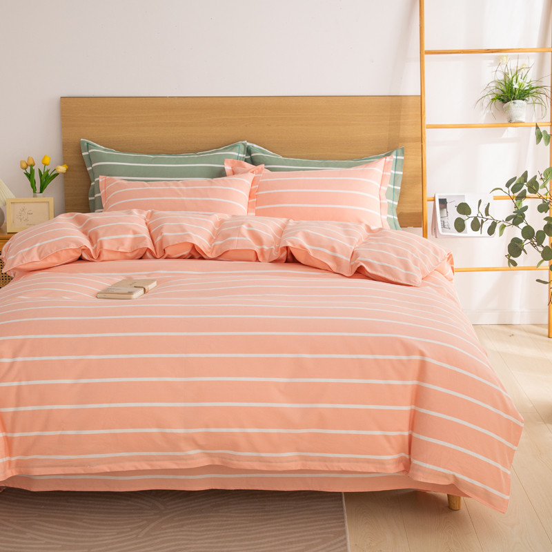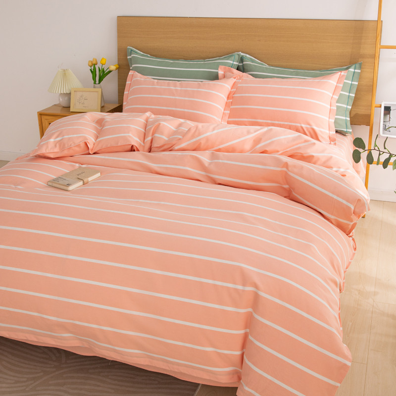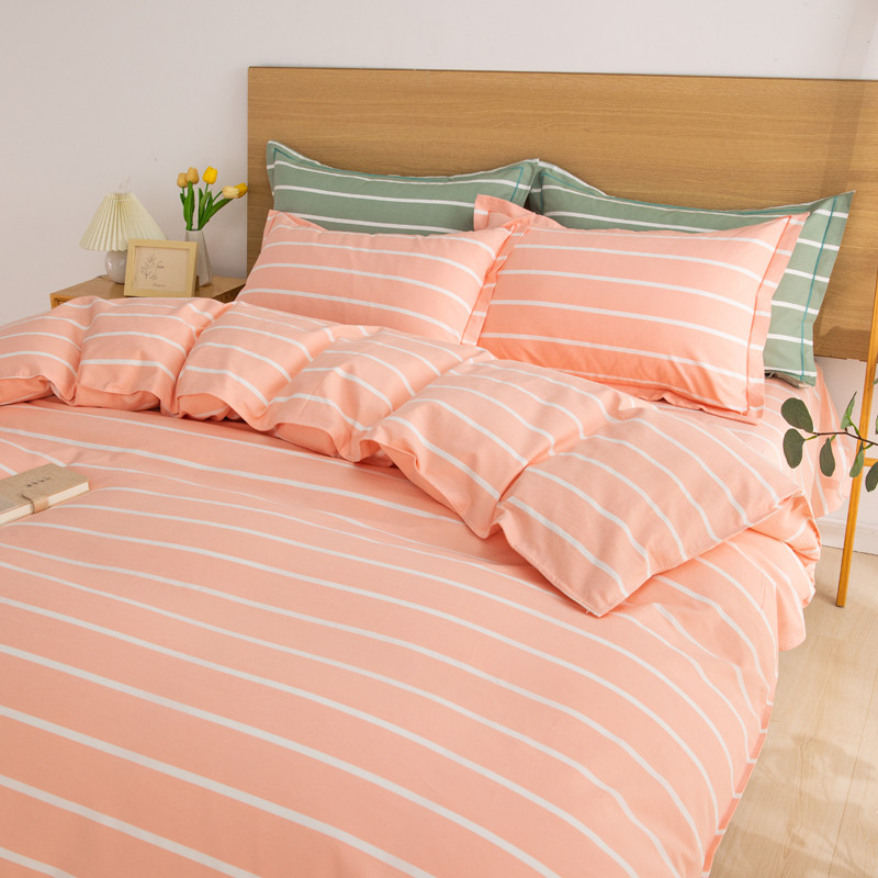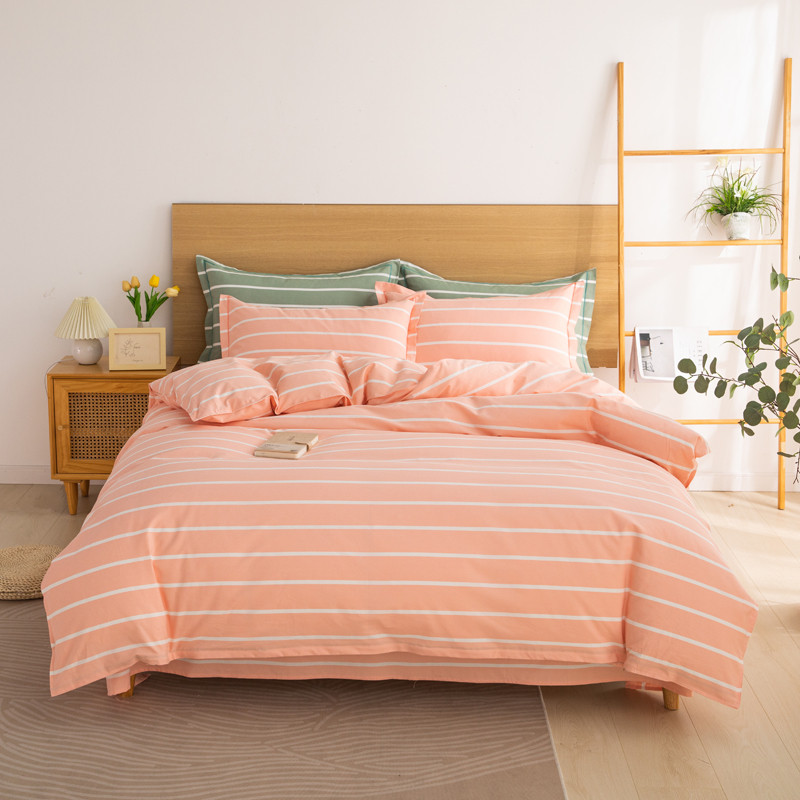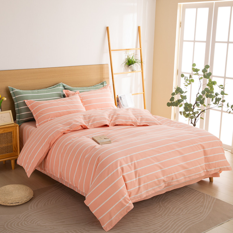 商品名称:杜先生 2023新款全棉无印风老粗布四件套直播爆款 无印风条纹-粉玉
