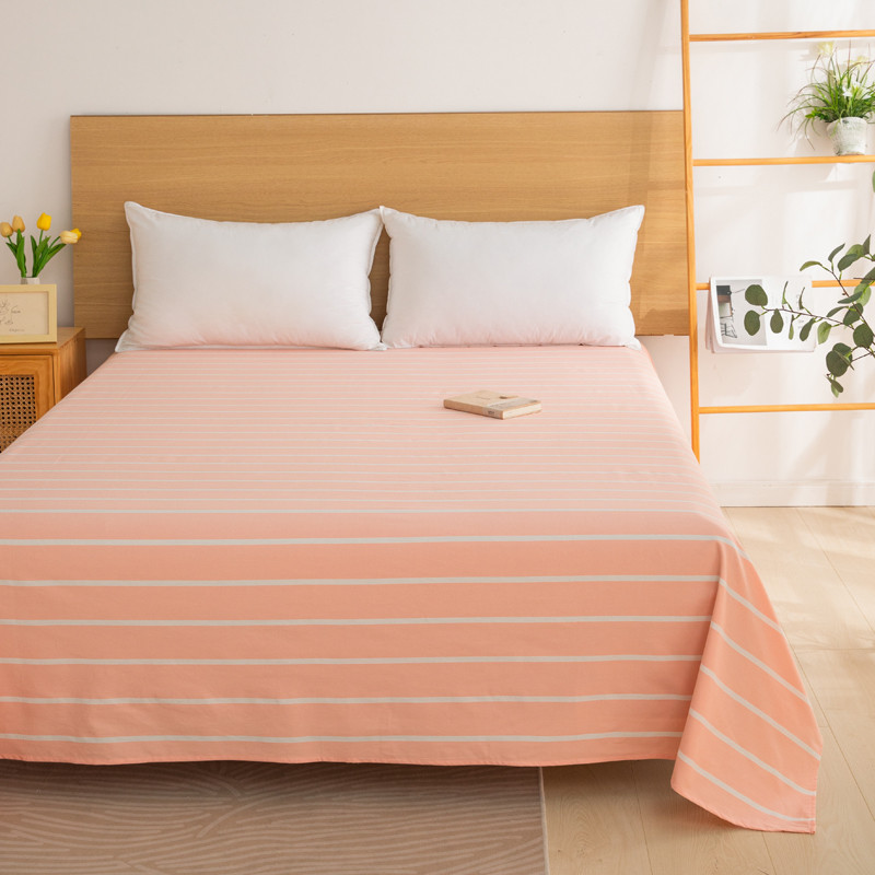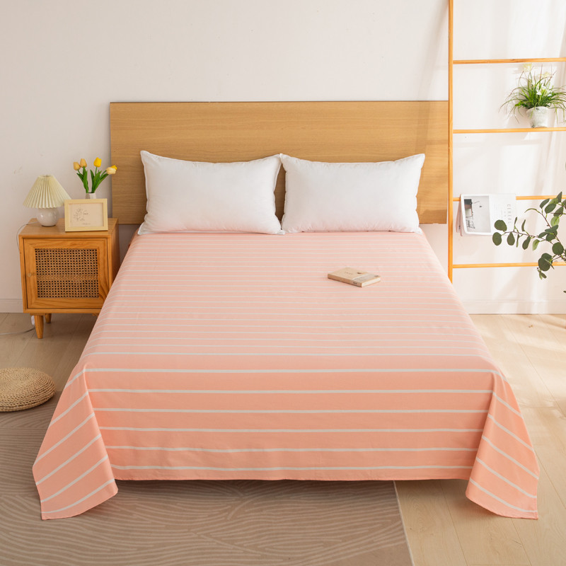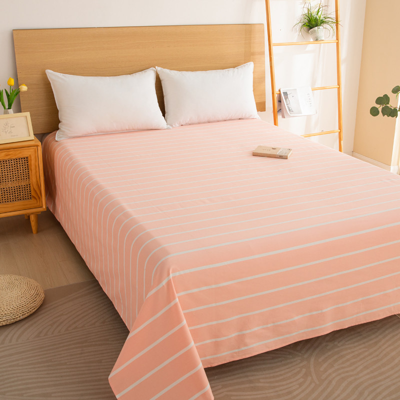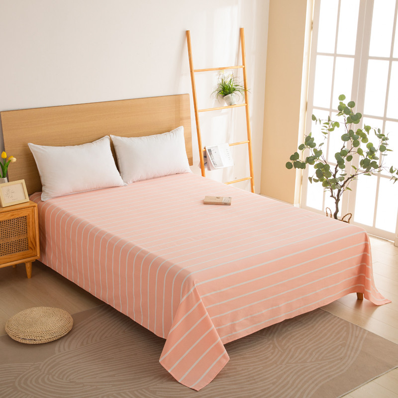 商品名称:杜先生 2023新款全棉无印风老粗布单床单直播爆款 无印风条纹-粉玉