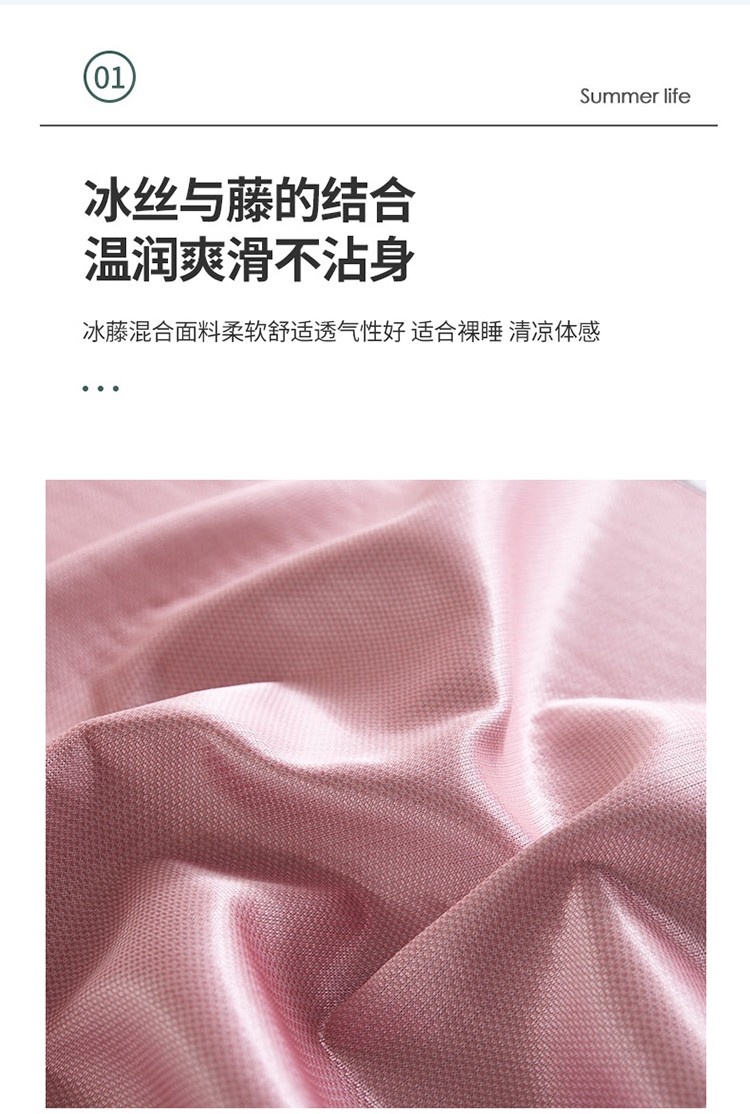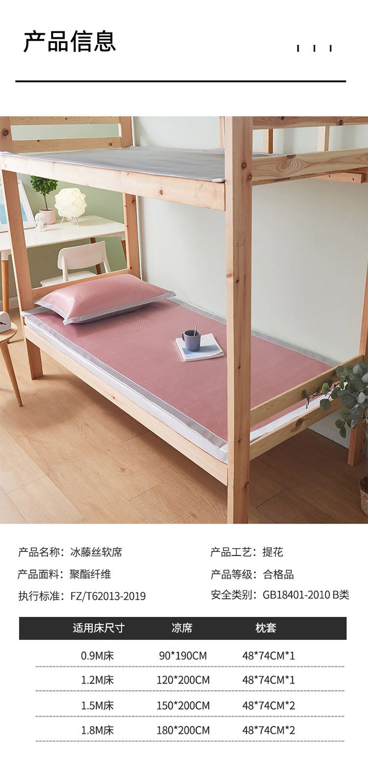 商品名称:爱港 2023新款学生宿舍冰藤丝套件冰丝凉席 胭脂粉