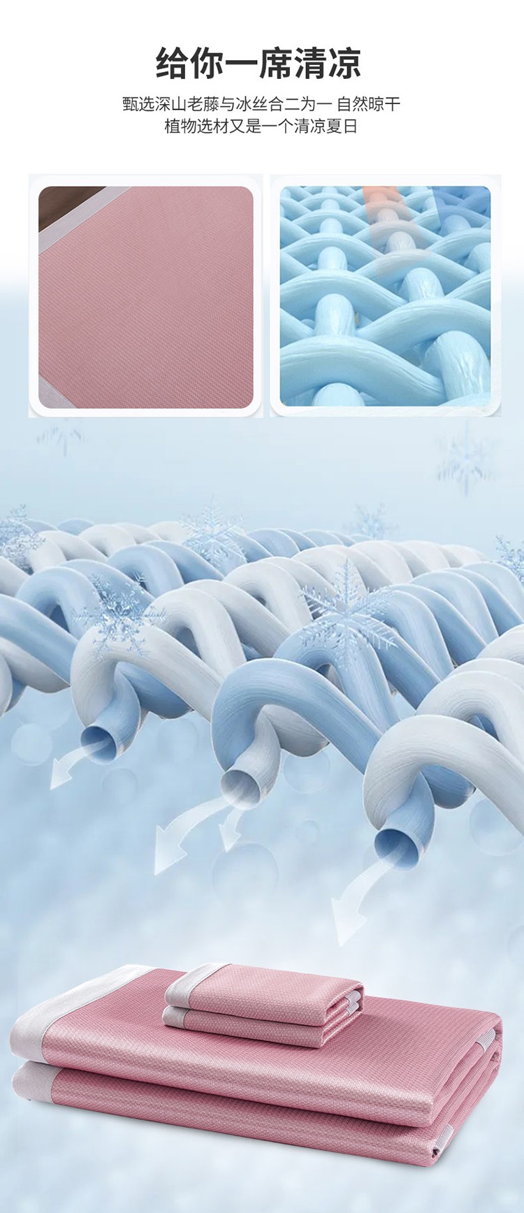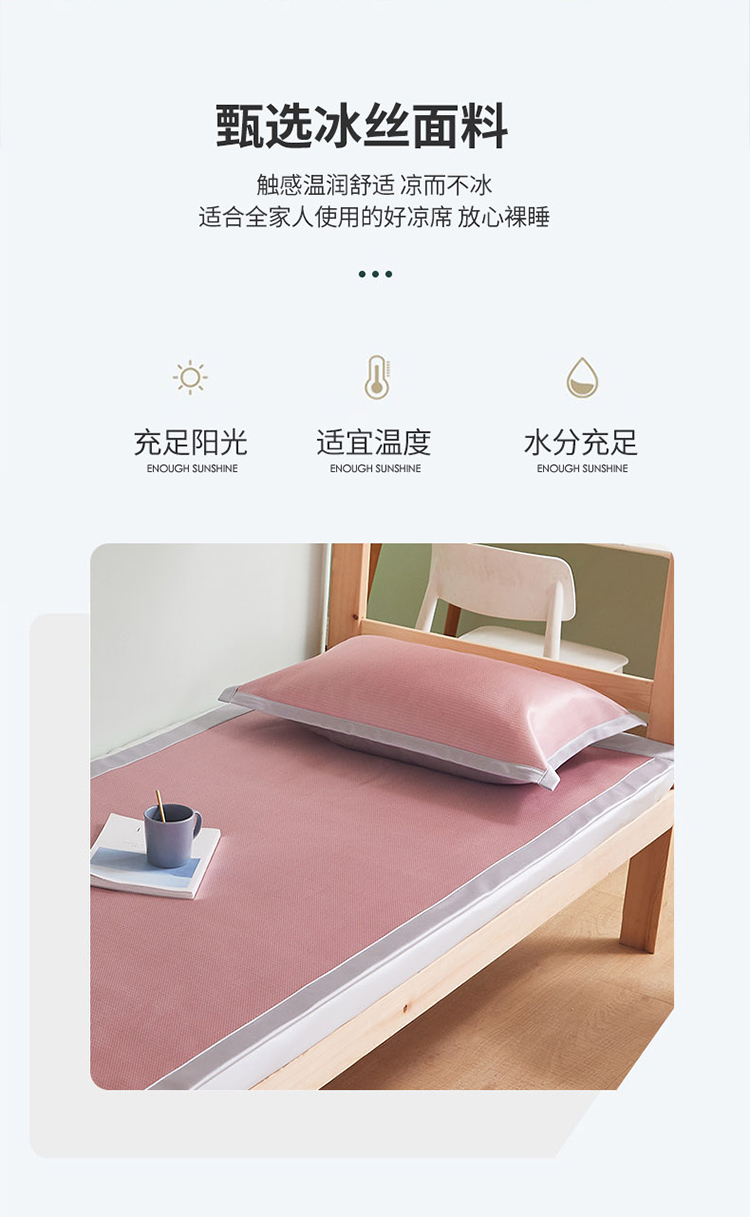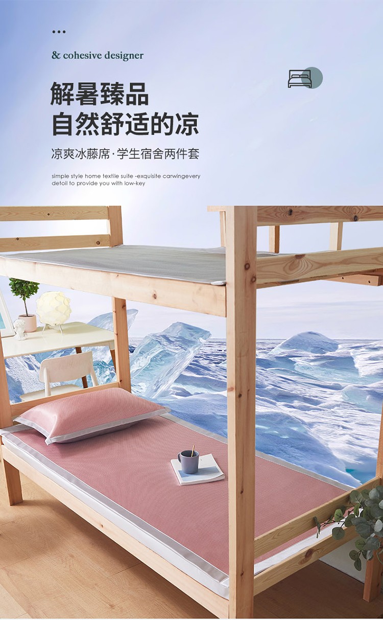 爱港 2023新款学生宿舍冰藤丝套件冰丝凉席 胭脂粉